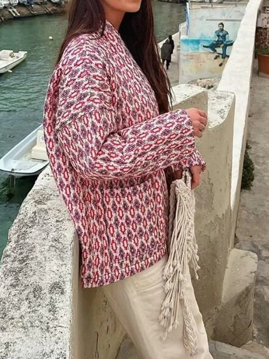 Tessy - Damquiltad jacka Lätt vadderad jacka med elegant geometriskt tryck, mitt upptill