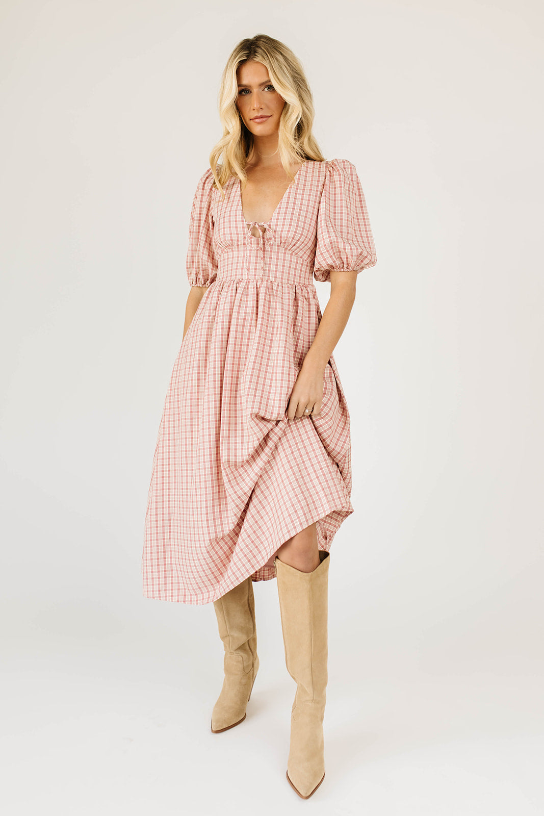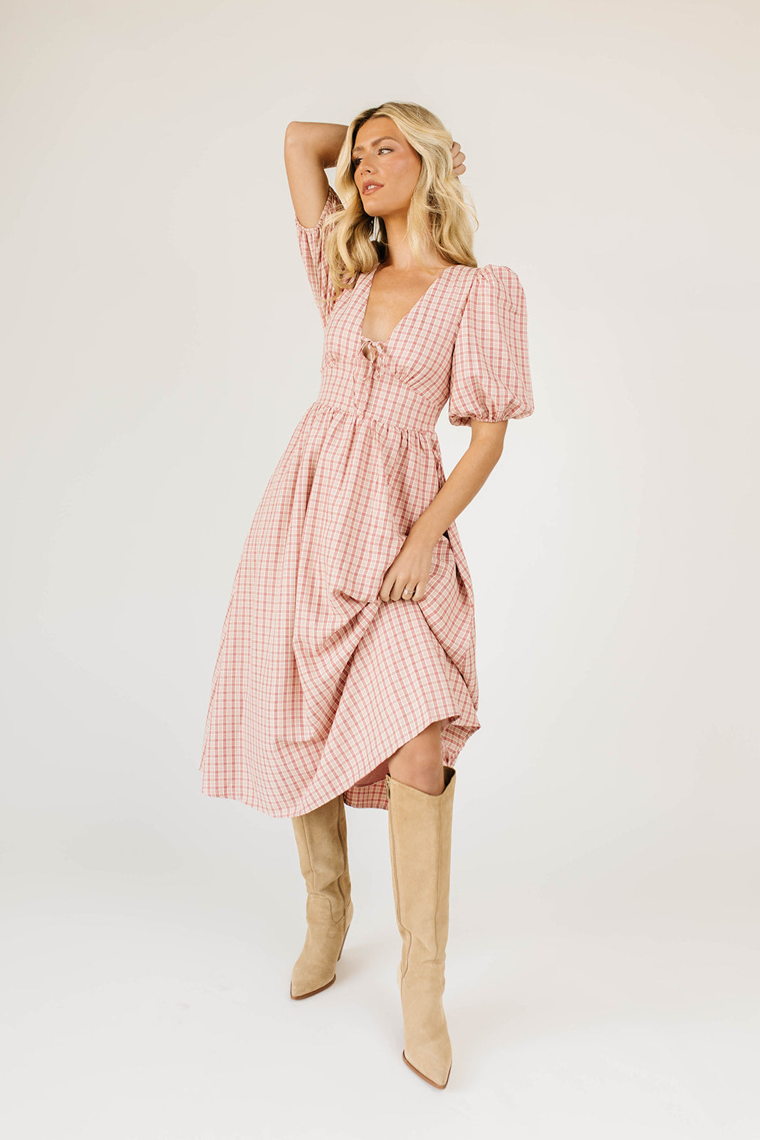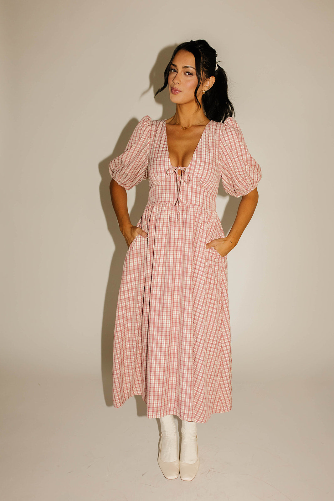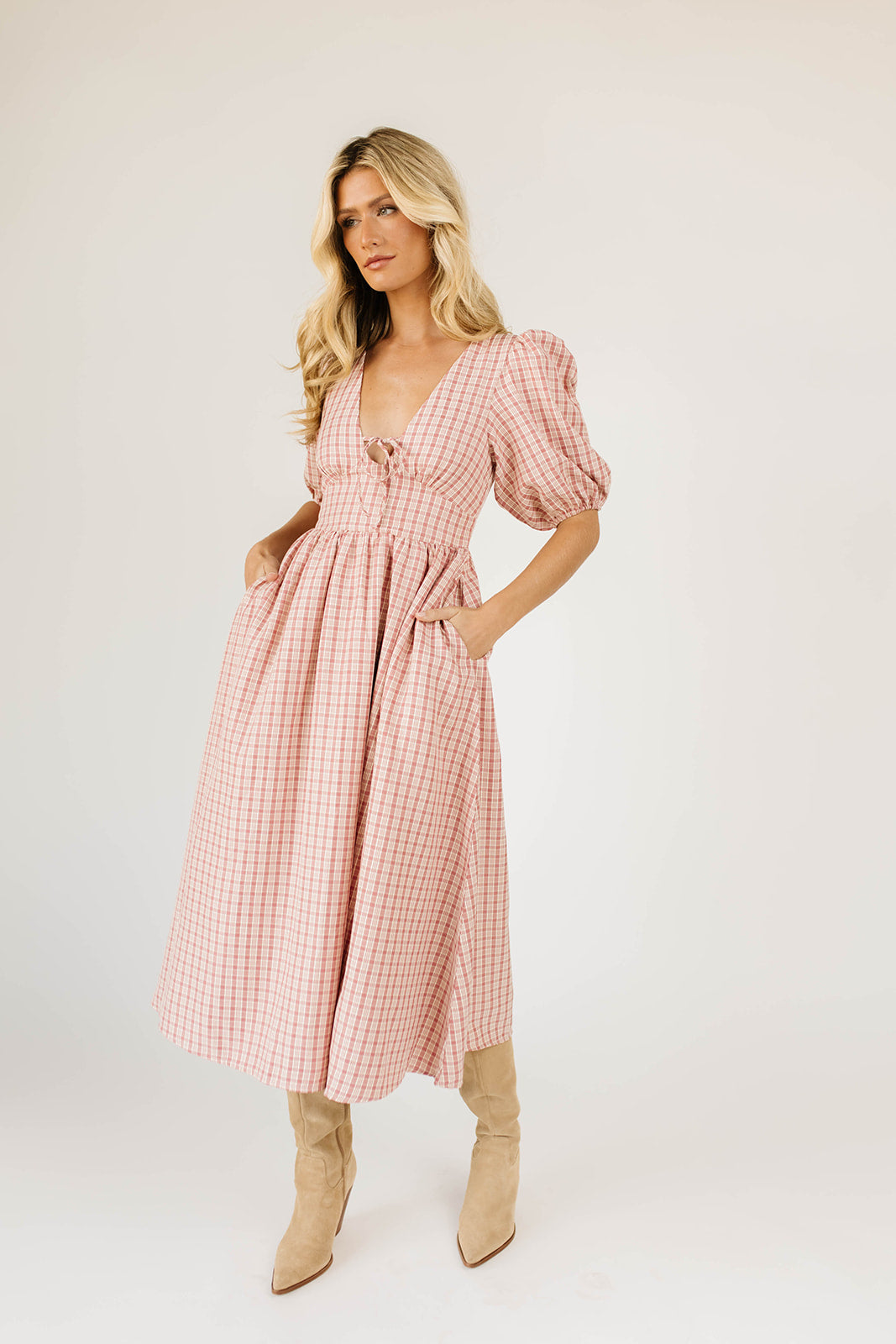 adeline midiklänning // rosa rutig *exklusivt från zoco*