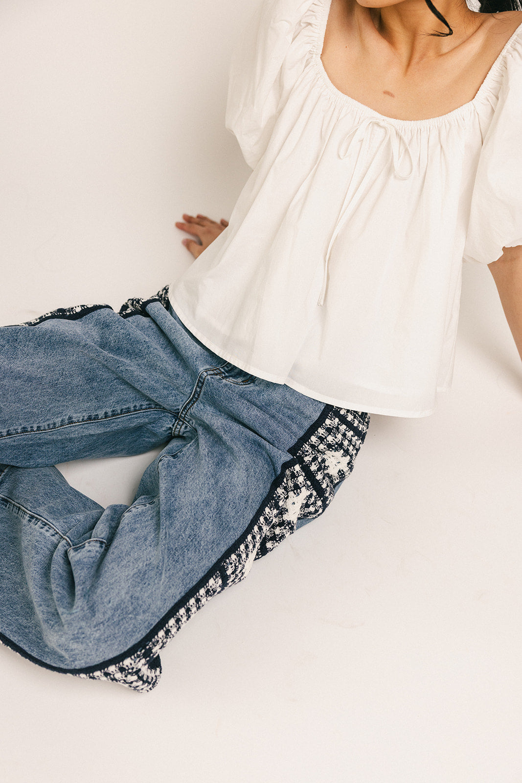 Matcha med allt din garderob har väntat på. Den här vita puffärmade toppen kommer att ta dig från dag till natt, säsong efter säsong. Med en stretchig fyrkantig halsringning och luftig silhuett är den den perfekta kombinationen av söt och bekväm. Klä upp den med en maxikjol och klackar, eller avslappnad med baggy denim och sneakers.