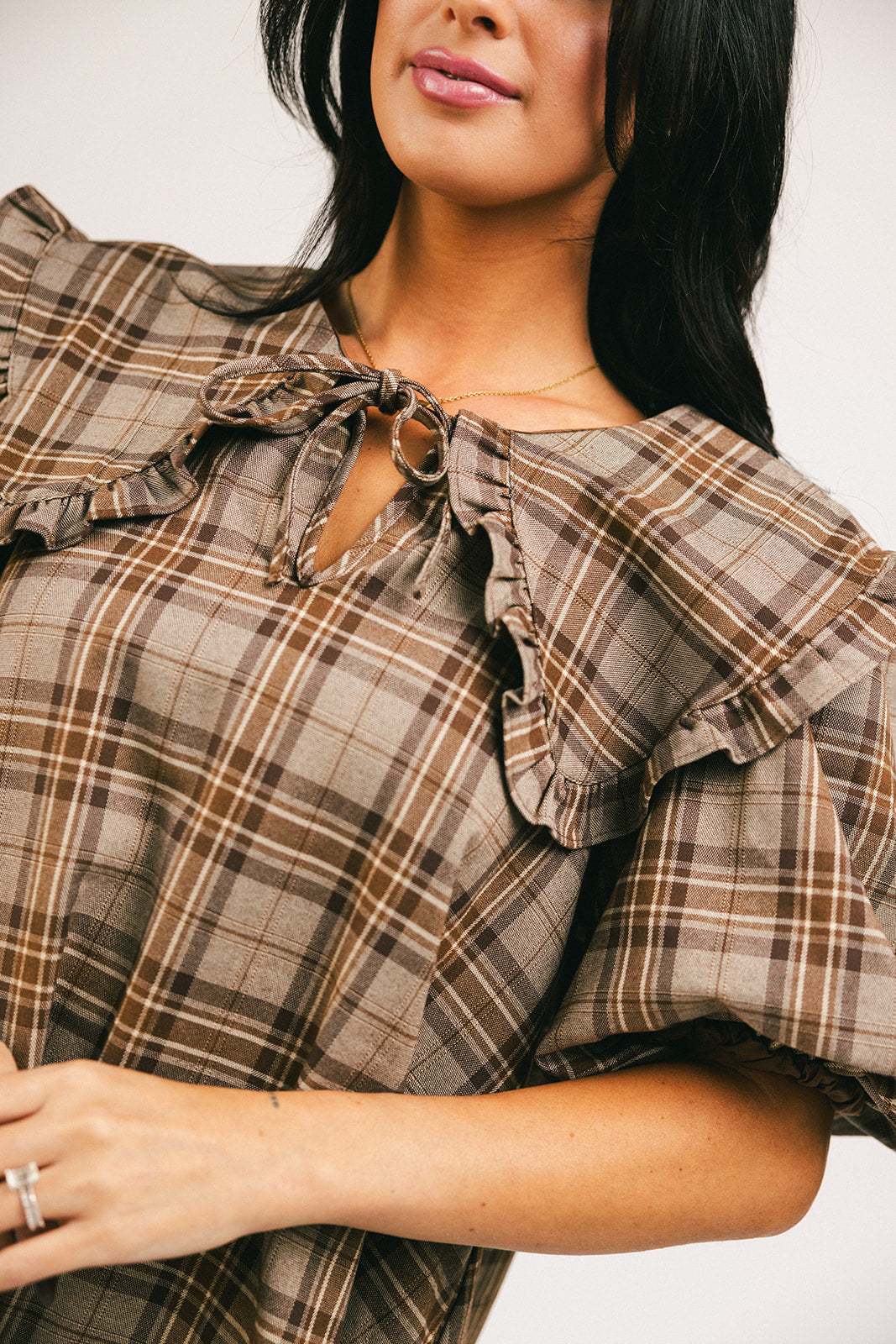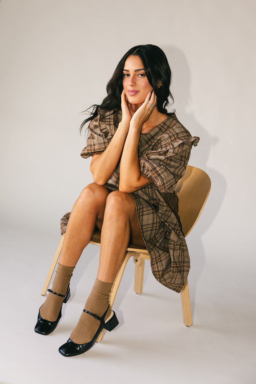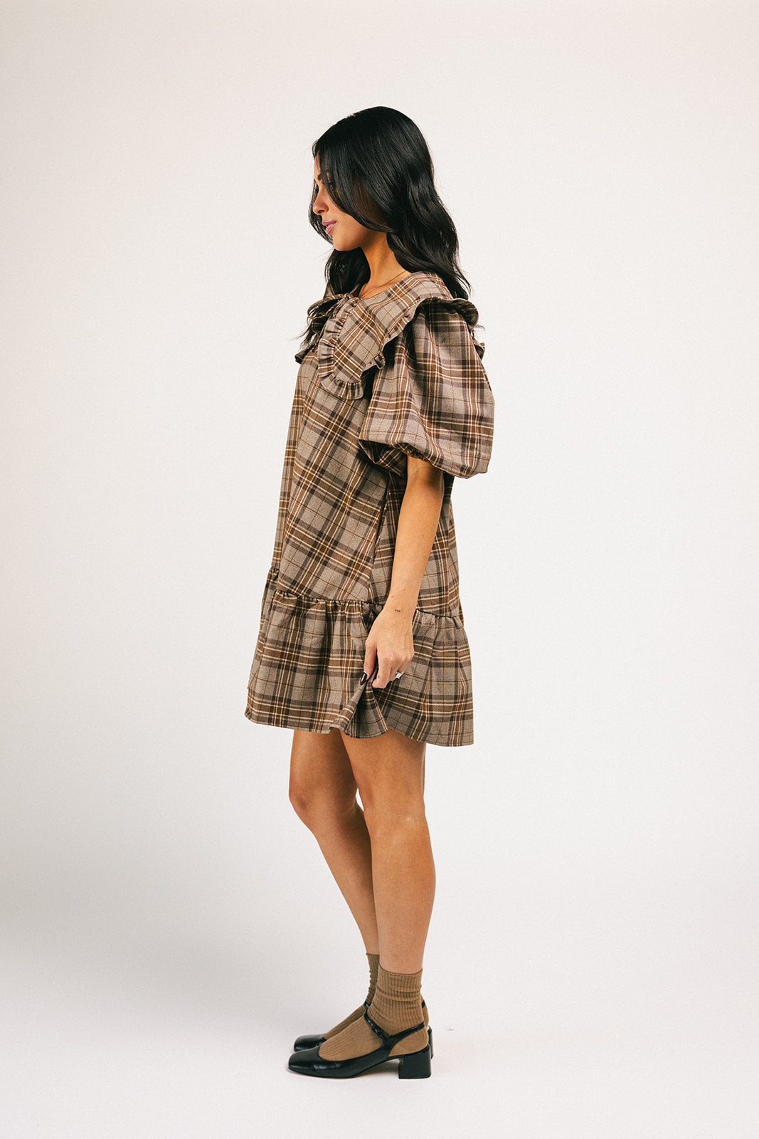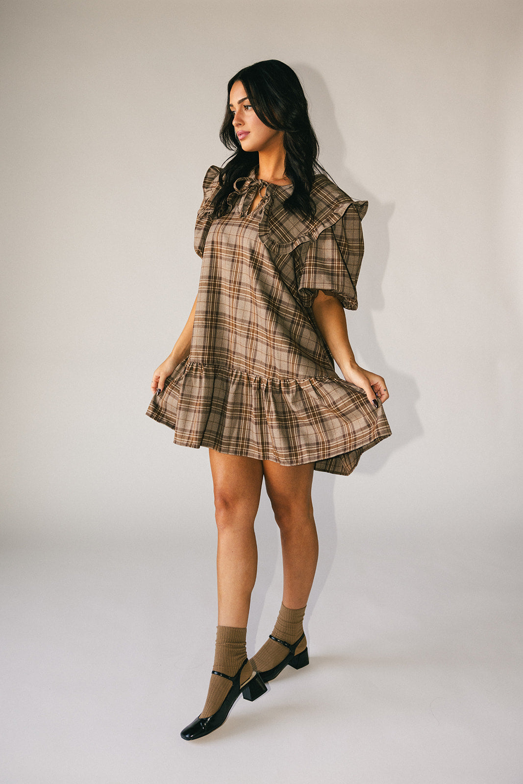 Det är säsong för söta rutiga miniklänningar. Med fina puffärmar och en elegant Peter Pan-krage är denna vintageinspirerade miniklänning perfekt för vinterdejter, familjebilder och julmiddagar. Vi älskar den uppklädd med knähöga stövlar eller nere med ballerinaskor.