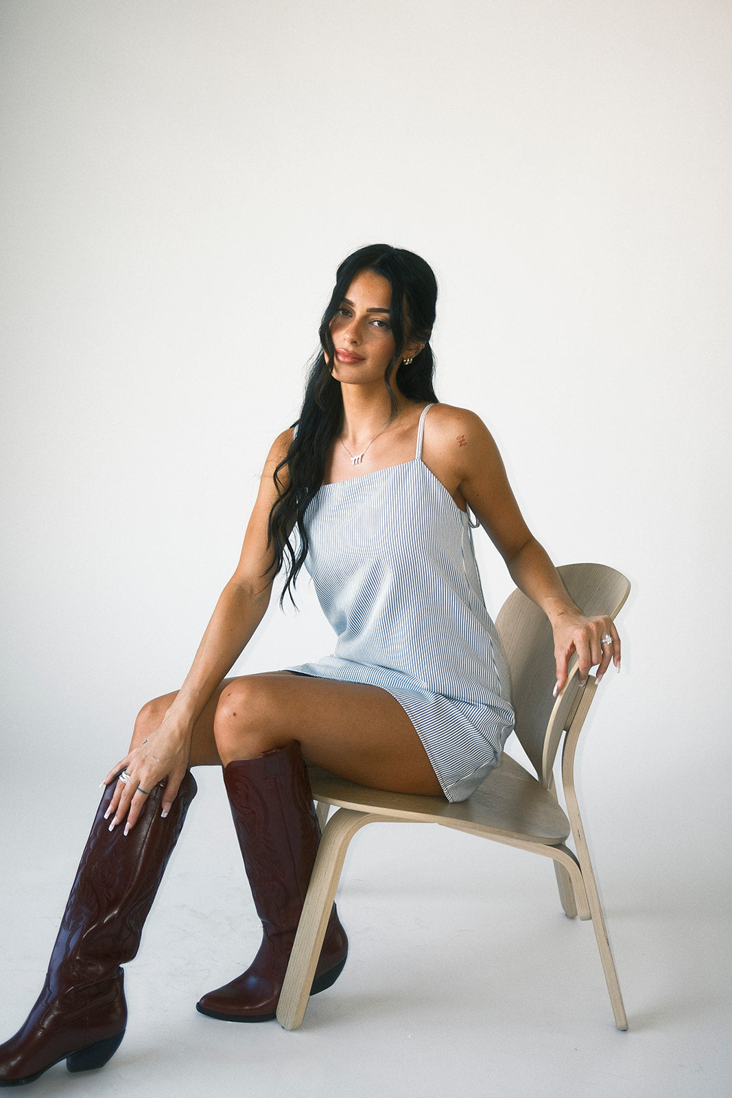 Supersöt + extra flörtig, den här blårandiga linneklänningen tar dig från vardagliga utflykter till eleganta dejtkvällar. Med sin enkla silhuett + justerbara knytband är det en perfekt klänning att ta på sig i många år framöver.