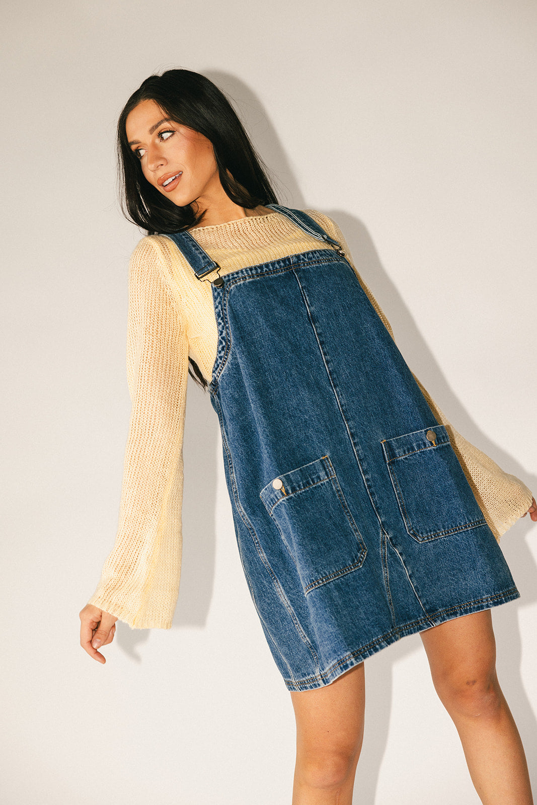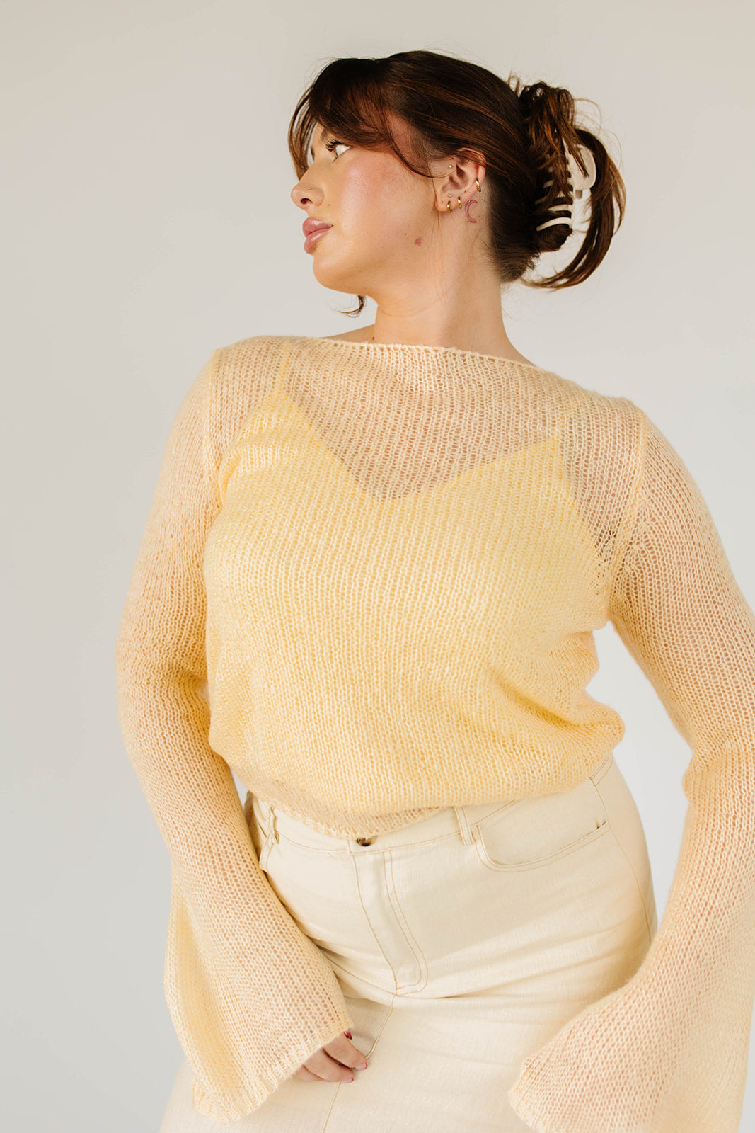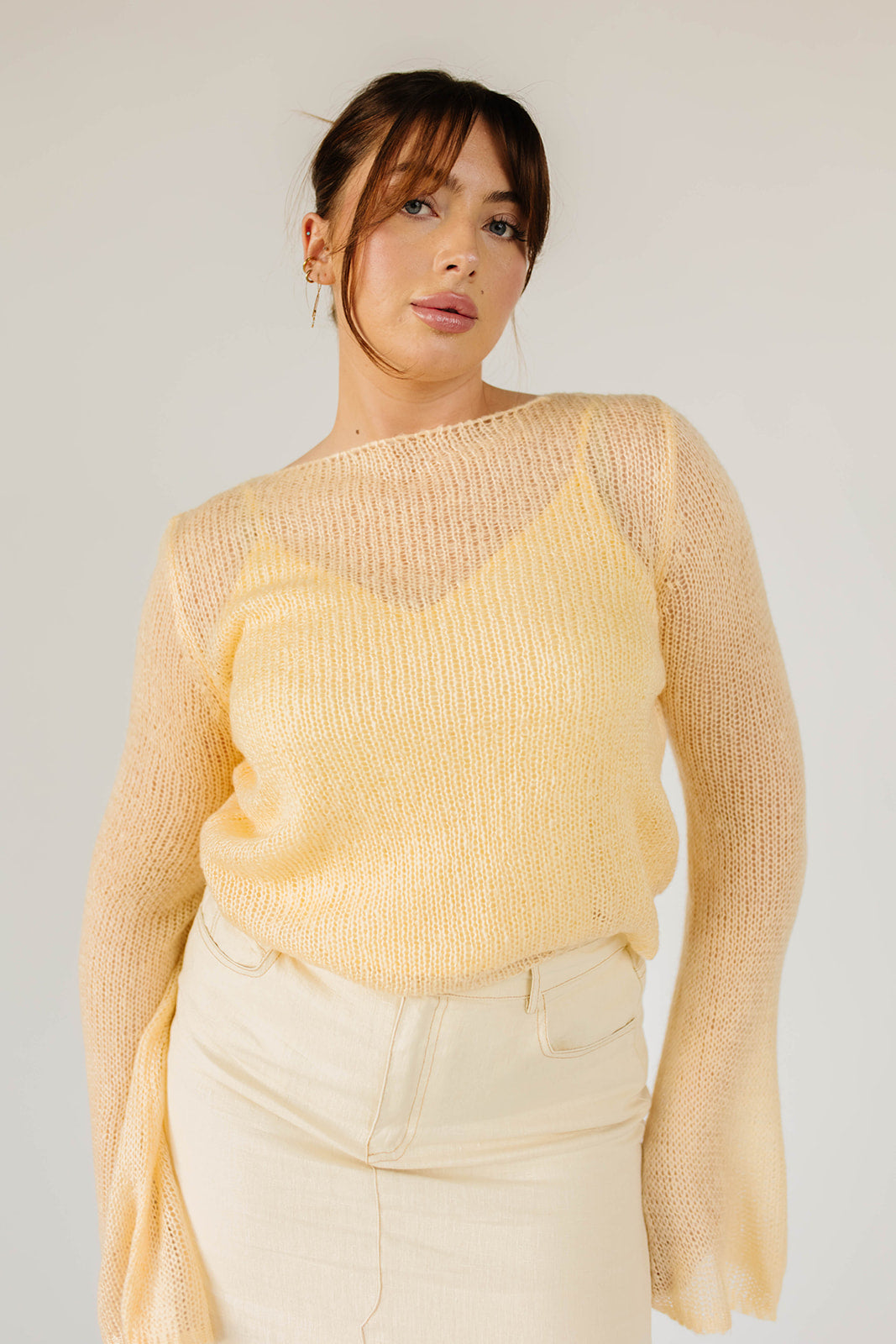 • smörgul // båtringad krage, långa utsvängda ärmar, v-ringad, avtagbar linne, justerbara axelband