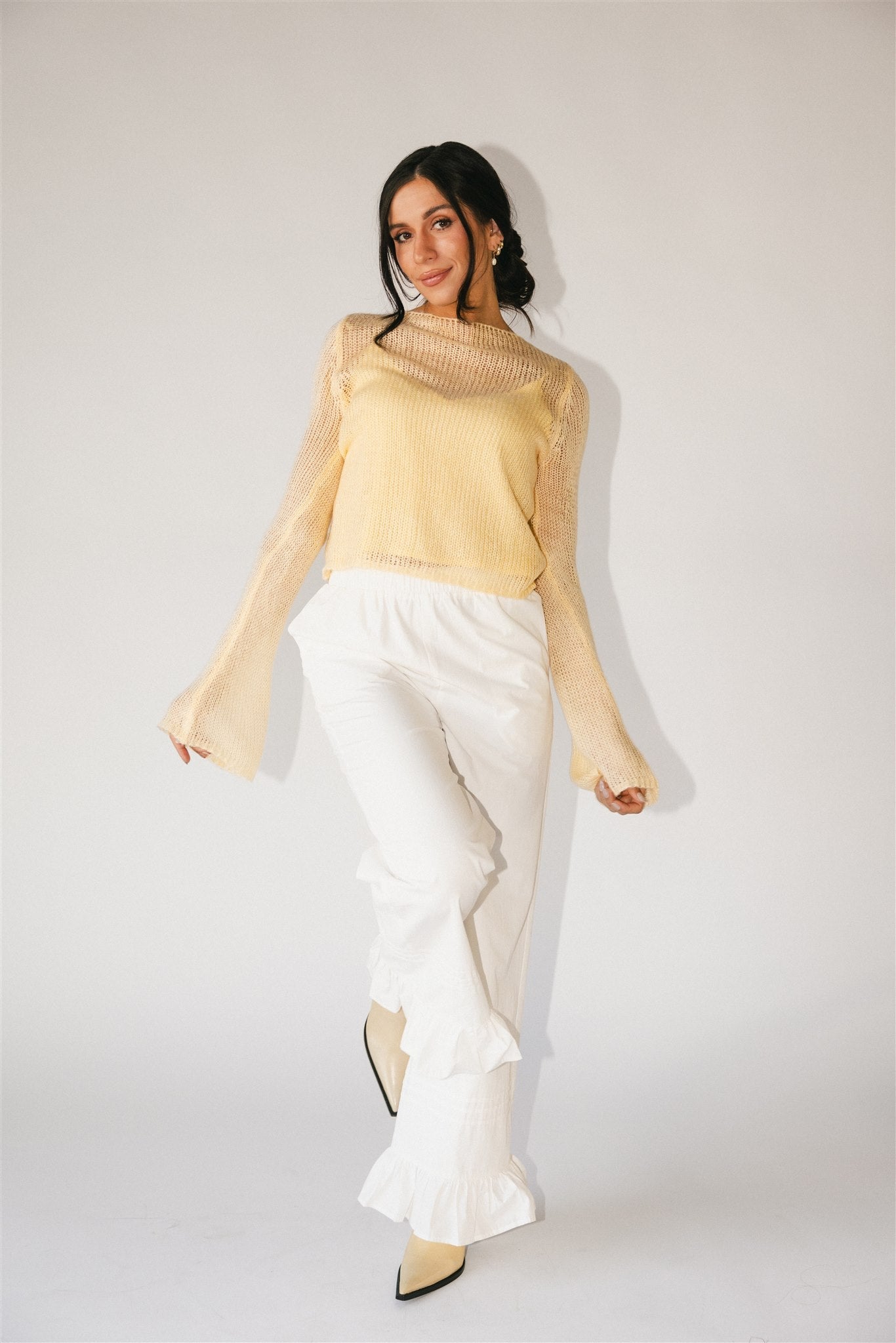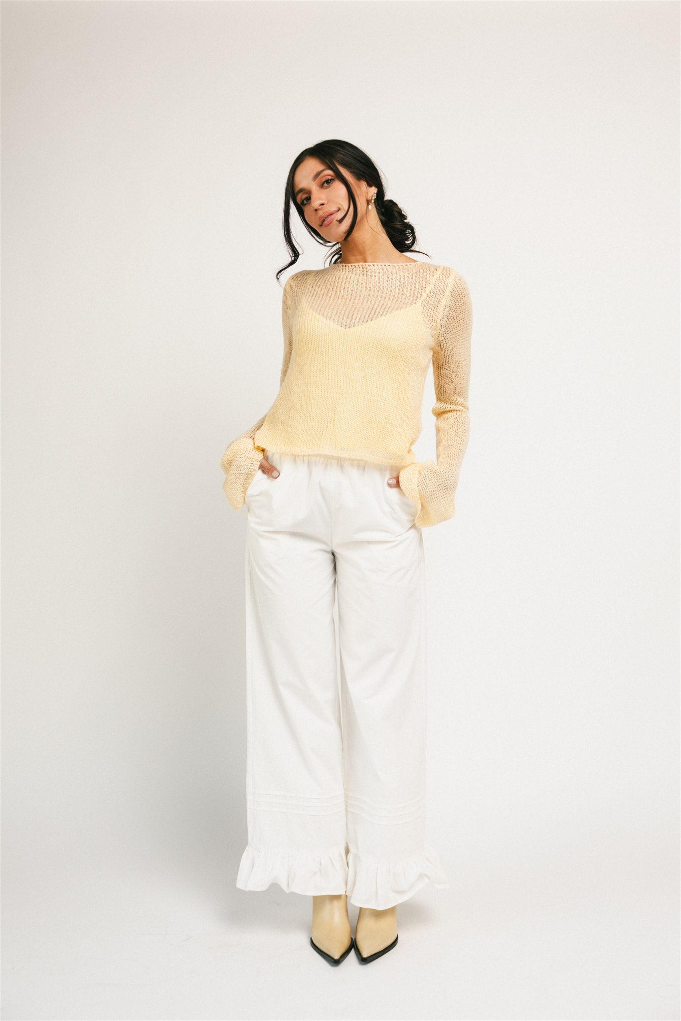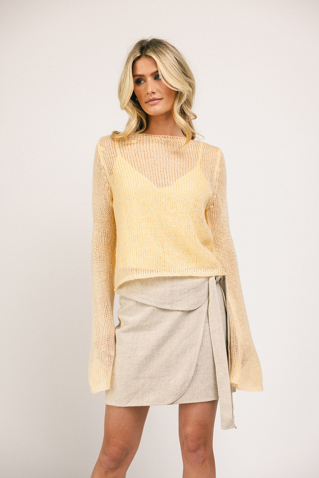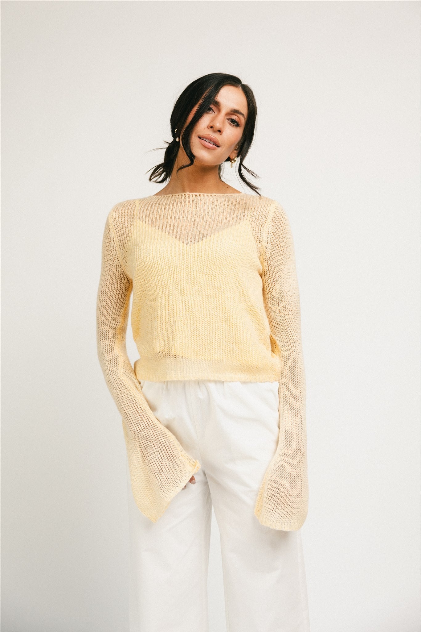 Rolig, fräsch och flörtig – denna exklusiva topp från Zoco tar dig från dag till natt, säsong efter säsong. Ett beskuret linne med utsvängda stickade ärmar, lätt och gjord för att kläs upp eller avslappnat. Vi älskar att matcha den med jeans, kjolar och allt däremellan.