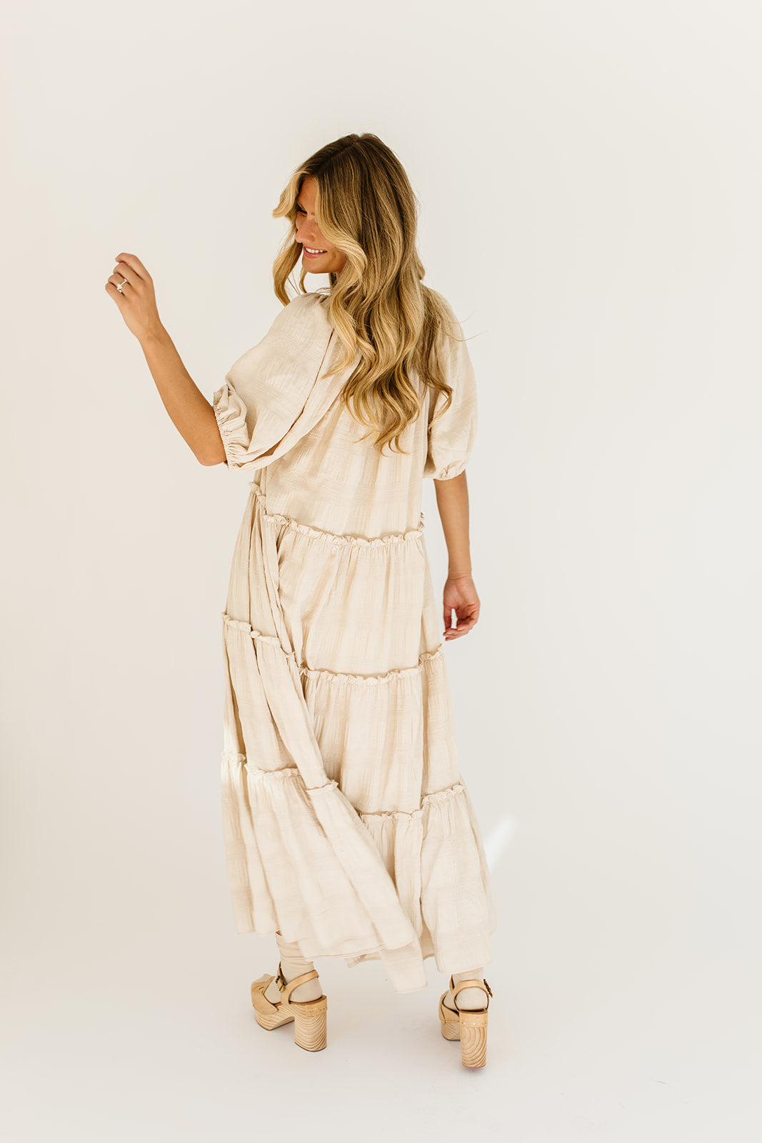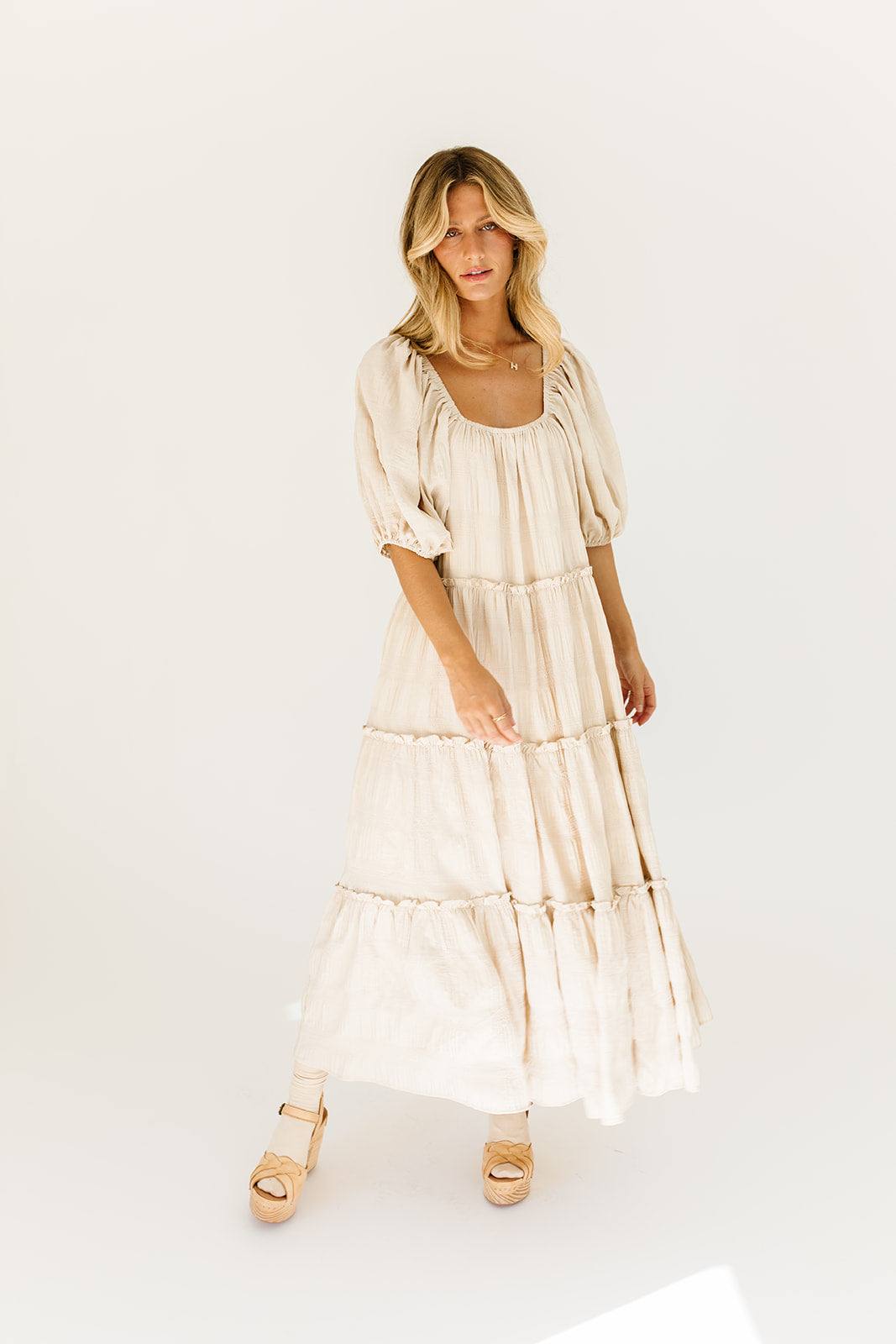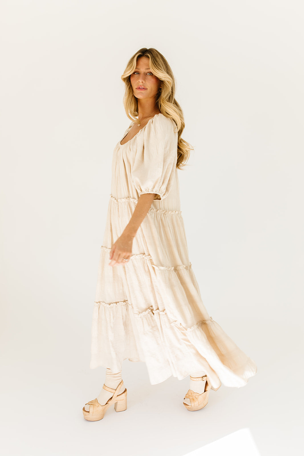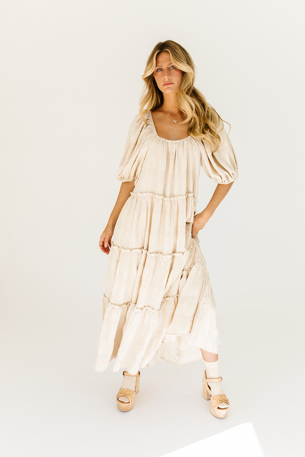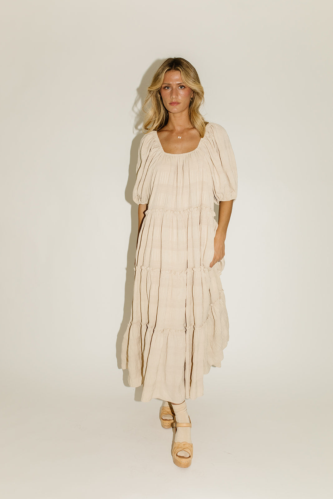 • sand // maxilängd, puffärm, skiktad kjol, elastisk rund halsringning