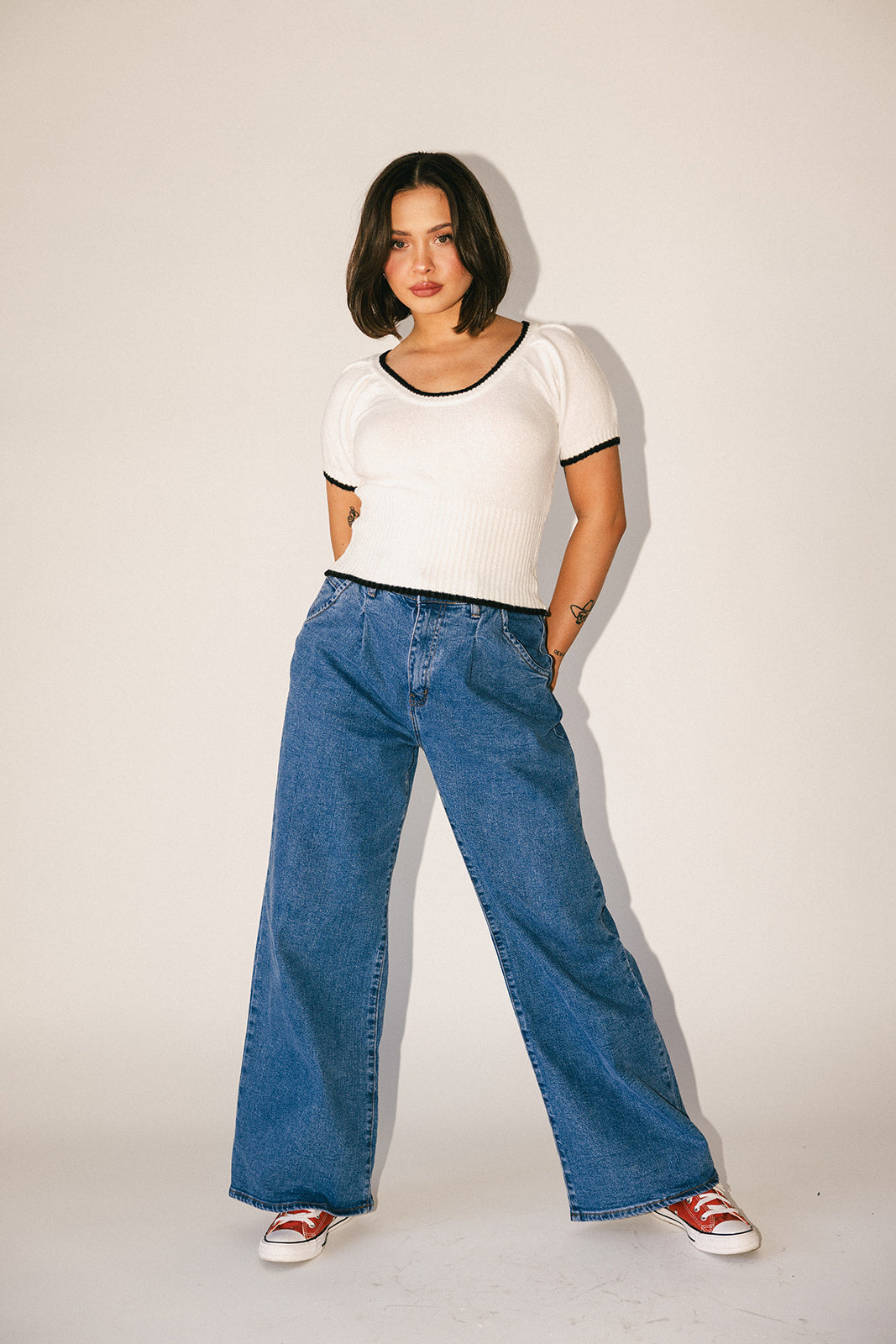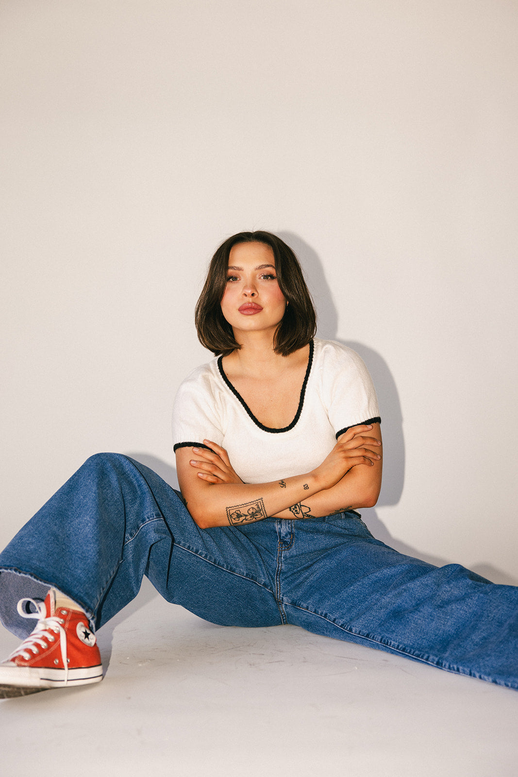 Denna inte så enkla vita topp med rund halsringning är lyxigt mjuk och sitter som en dröm. Med svarta detaljer och en ribbad midja som sitter precis rätt, garanteras du en elegant look. Klä upp den med en minikjol och klackar för en dejtkväll, eller med jeans och sneakers för en avslappnad stil.