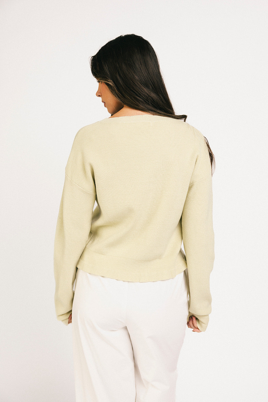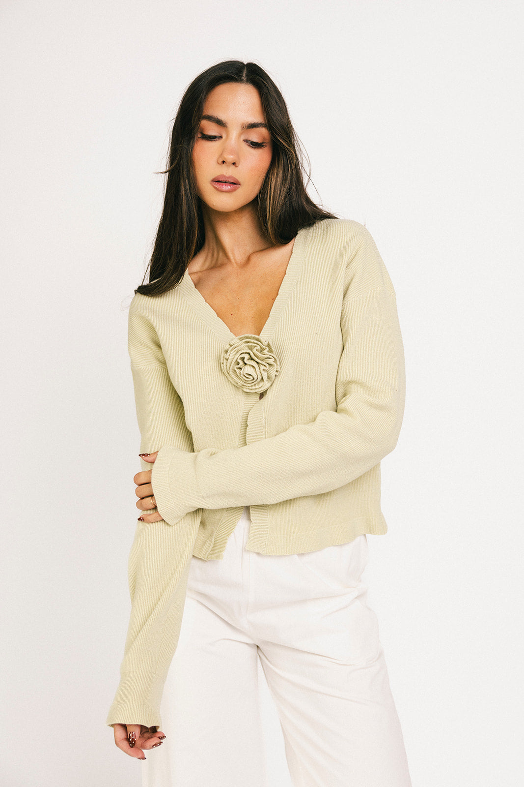• salvia // v-ringning, öppen framtill, 3D-rosettknäppning, volangkant i nederkant + manschetter