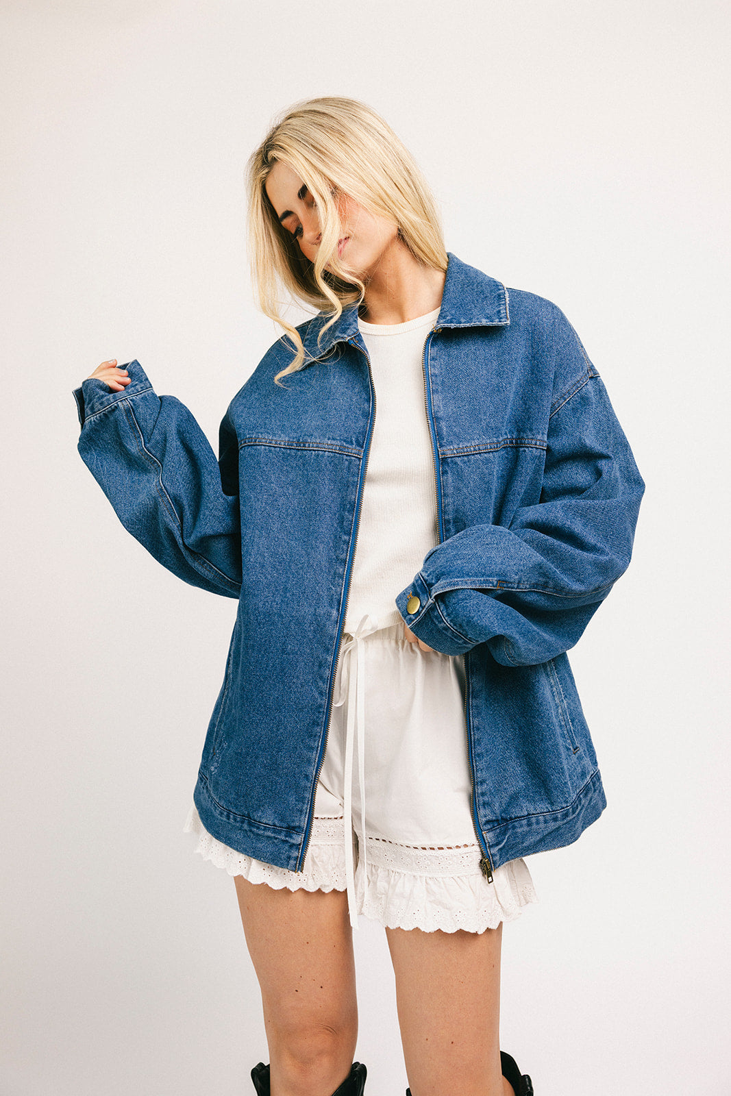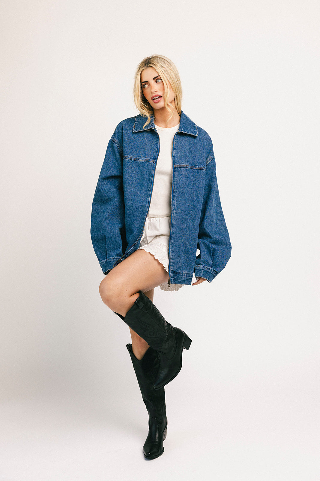 Din nya ride-or-die jeansjacka, den här exklusiva Zoco-jackan är lagret du kommer att slänga över allt. Med den mest perfekta oversized passformen och subtila slitna detaljer, ger den utstrålning av 90-talsenergi på bästa möjliga sätt. Bär den med shorts, byxor eller över en klänning – den här fungerar året runt.