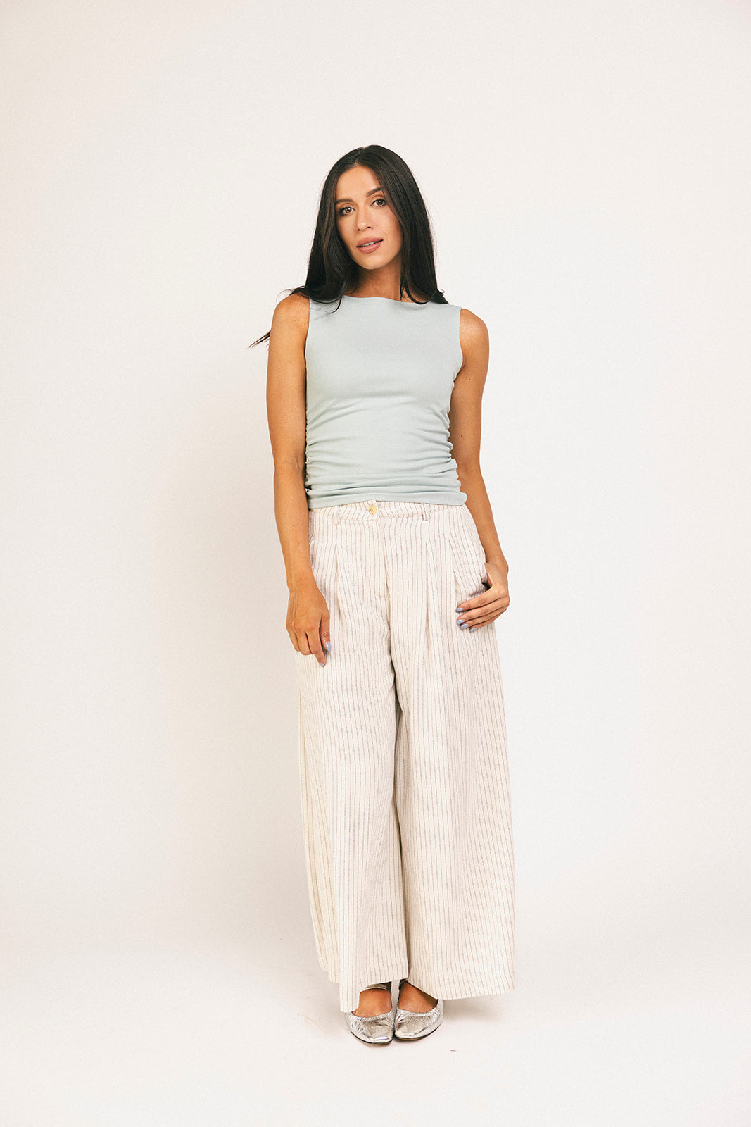 Dina nya favoritbyxor för sommaren – dessa böljande byxor med vida ben är fulla av söta outfits. De är lätta med en lös passform och har ett elegant randigt mönster. Klä upp dem med en blus och klackar, eller avslappnade med en t-shirt och sneakers.