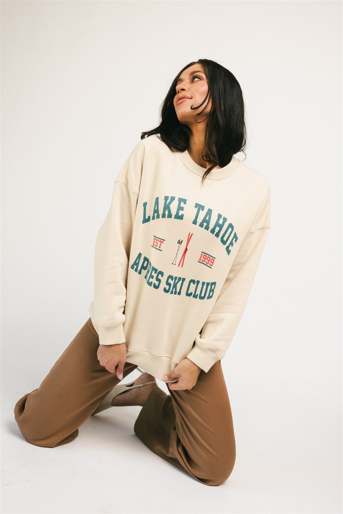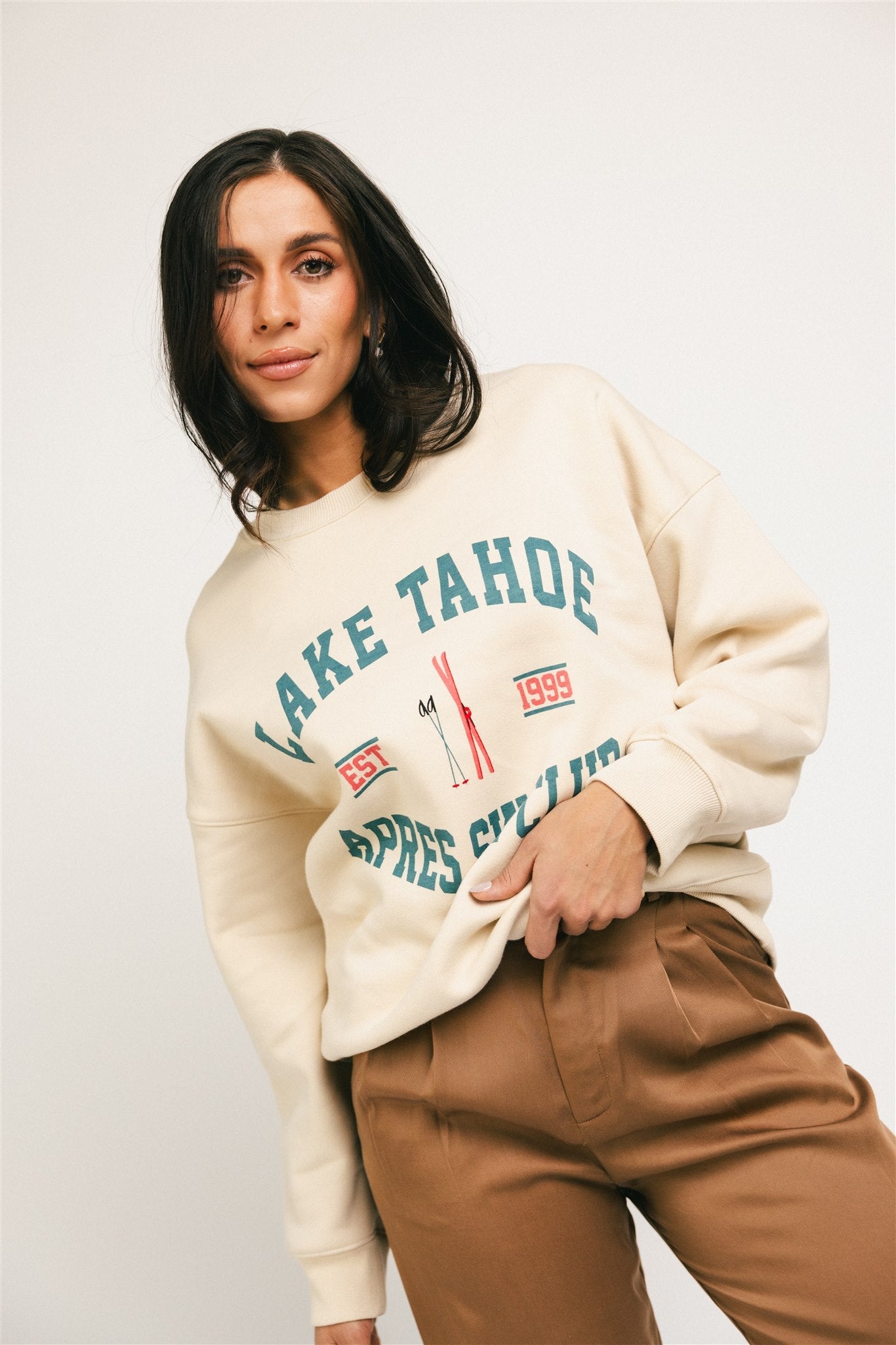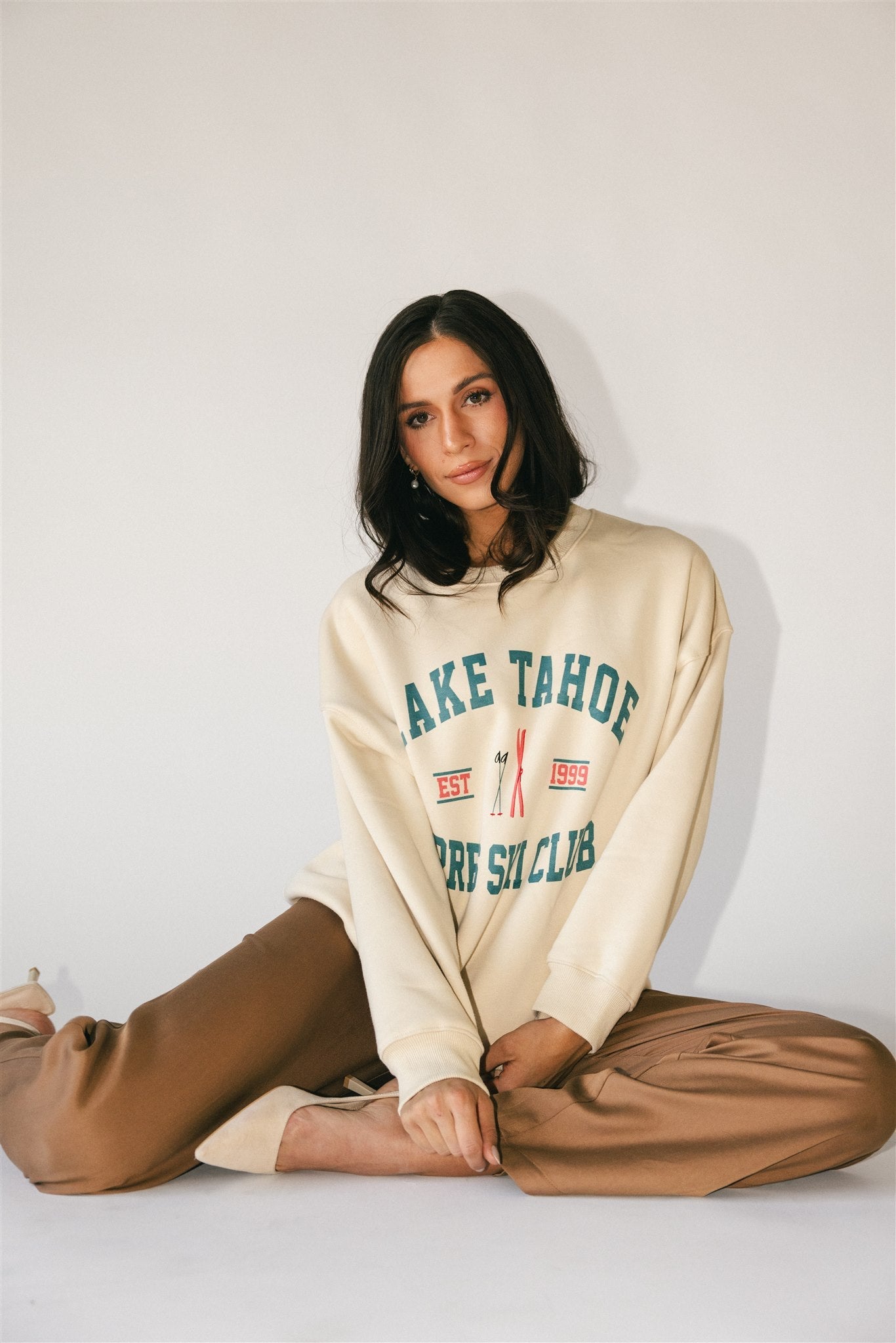 • beige // rund halsringning, nedsänkt axel, Lake Tahoe-tryck