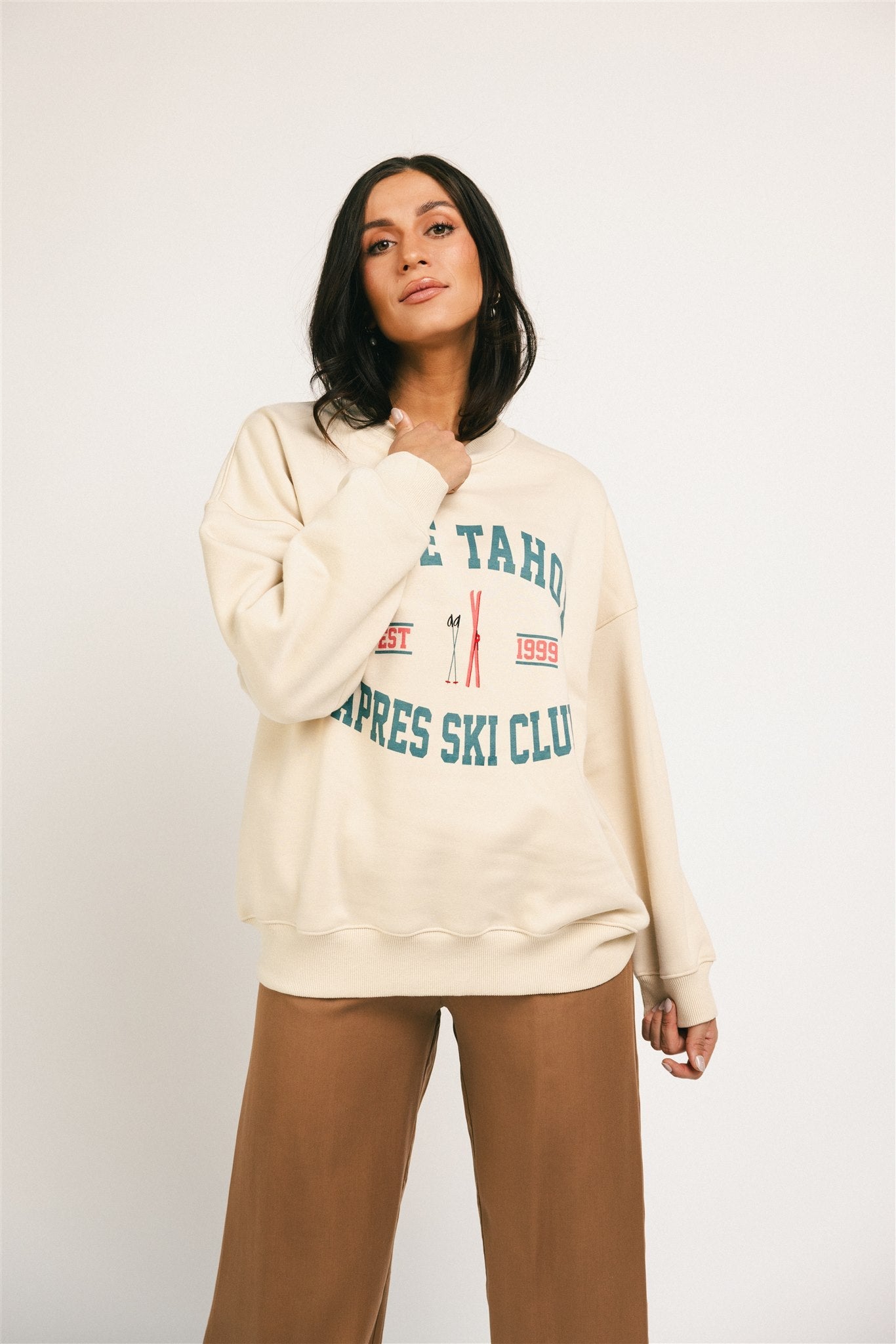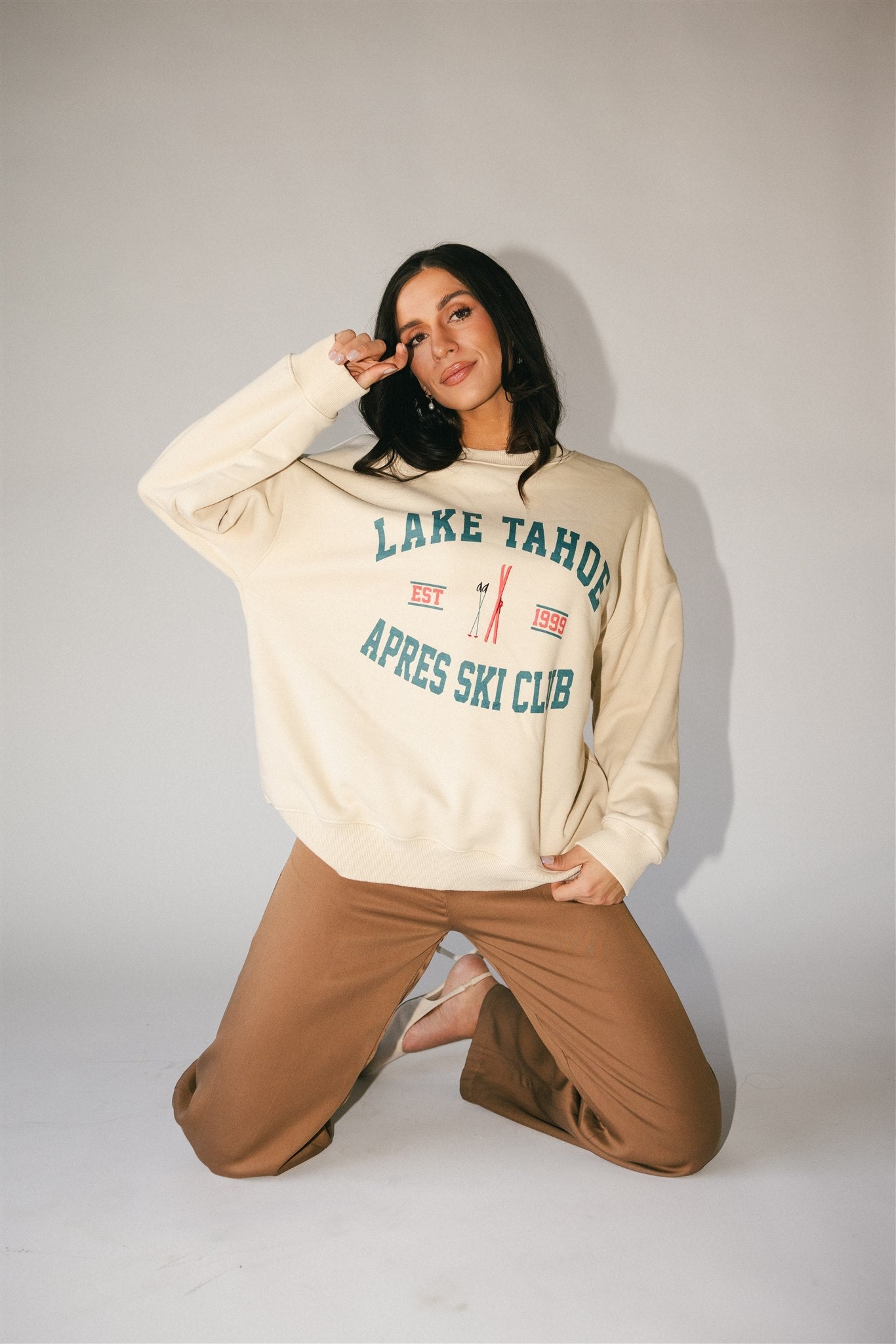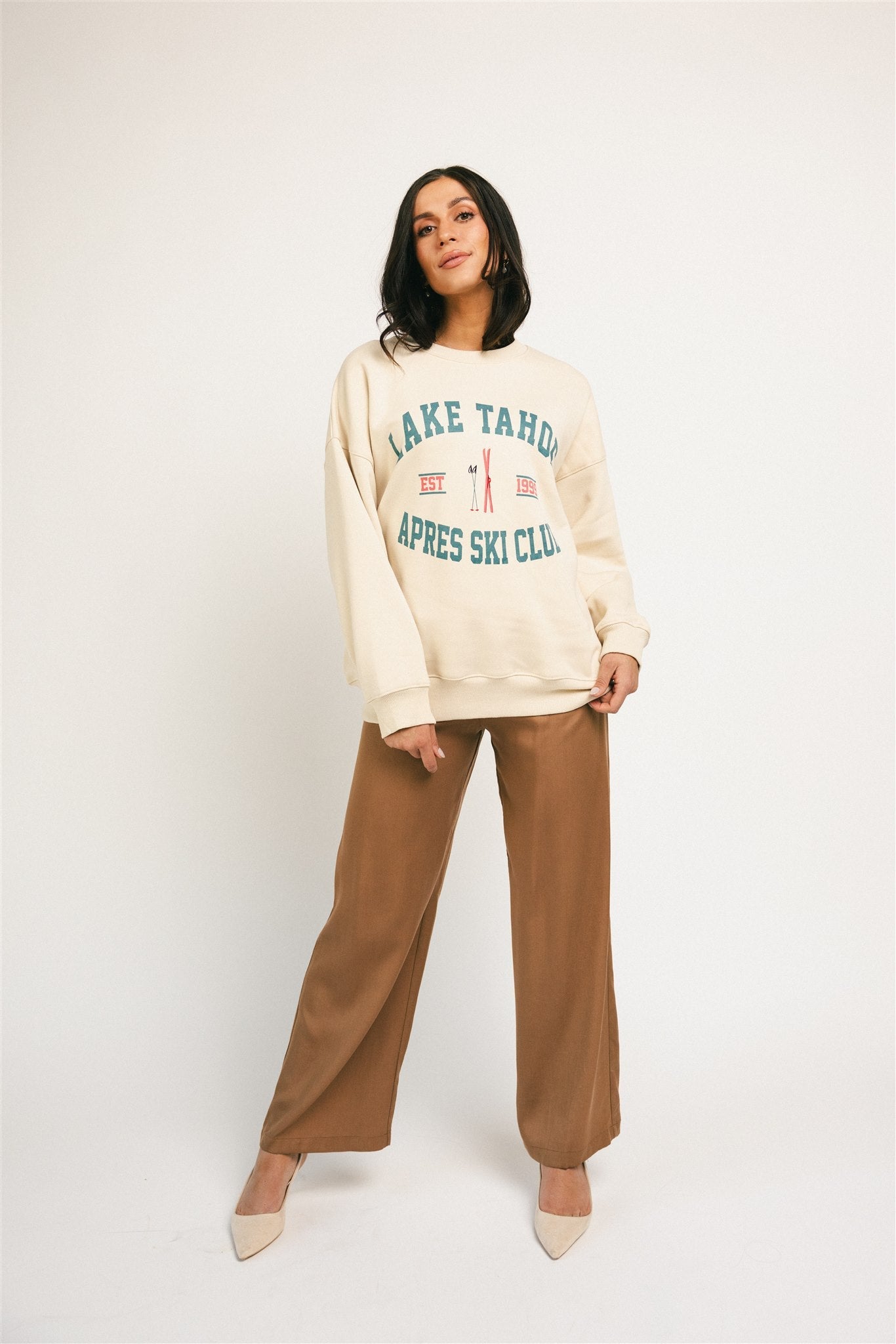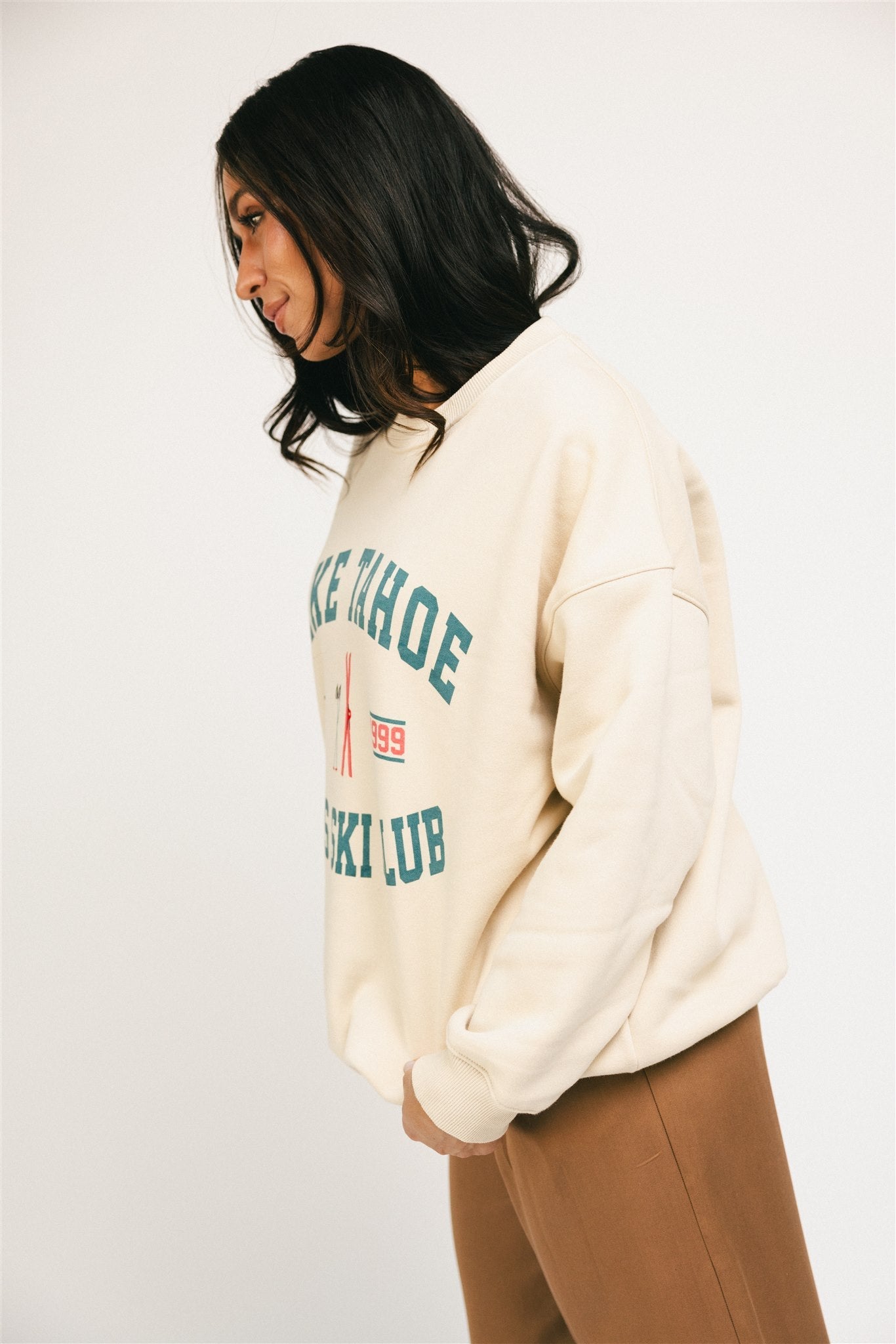 • beige // rund halsringning, nedsänkt axel, Lake Tahoe-tryck