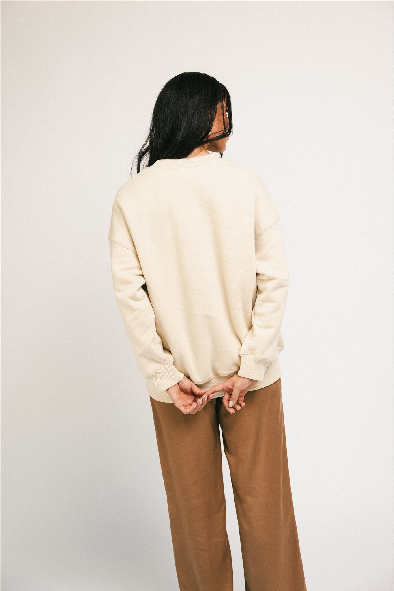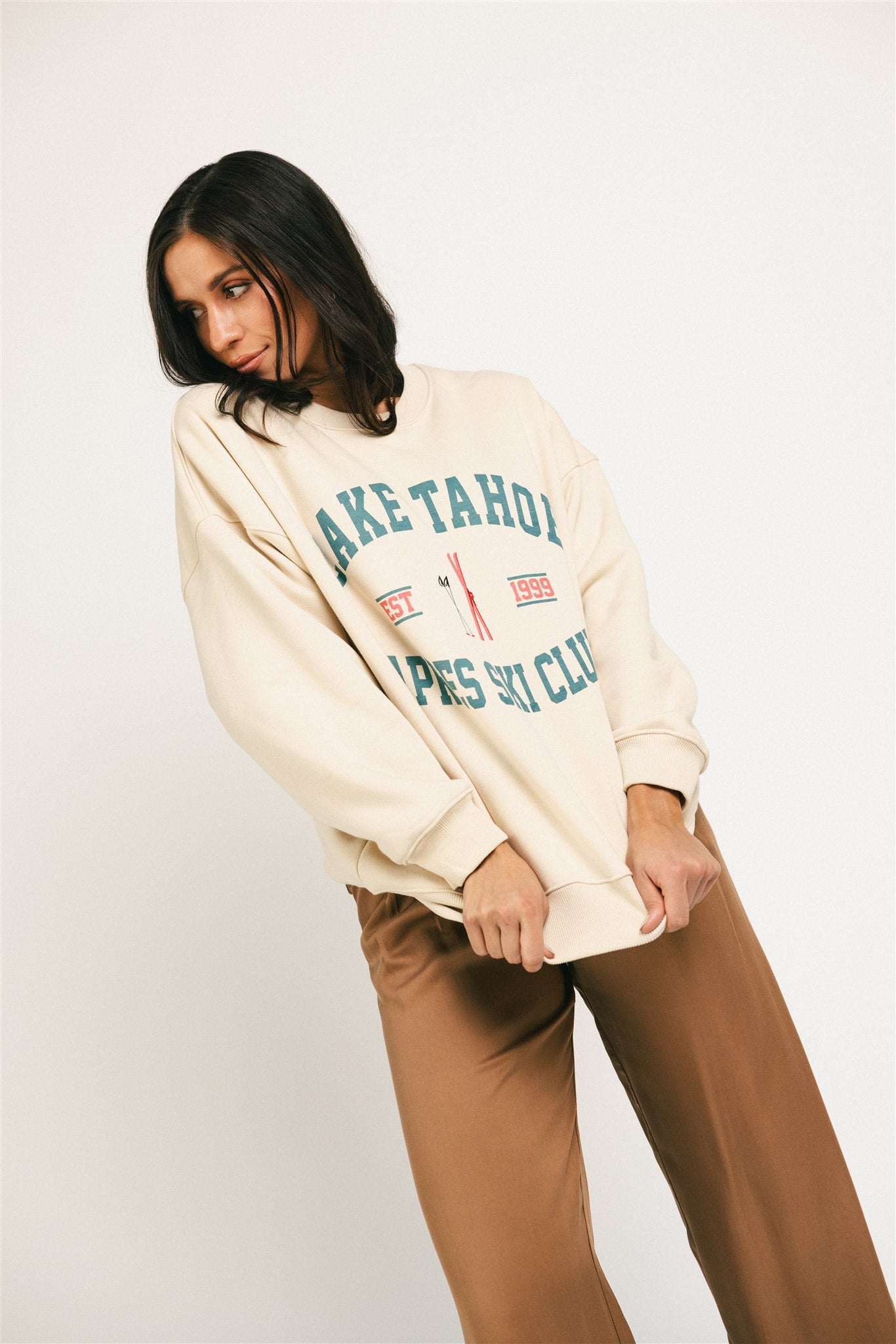 En rundhalsad tröja i universitetsstil med vintagekänsla, den här tröjan är lika mysig som den är söt. Med en överdimensionerad passform och sportig blockbokstäver är den perfekt för mysiga kvällar hemma eller hektiska dagar ute. Det perfekta tillskottet till din flygplatsoutfit eller vardagliga ensemble.
