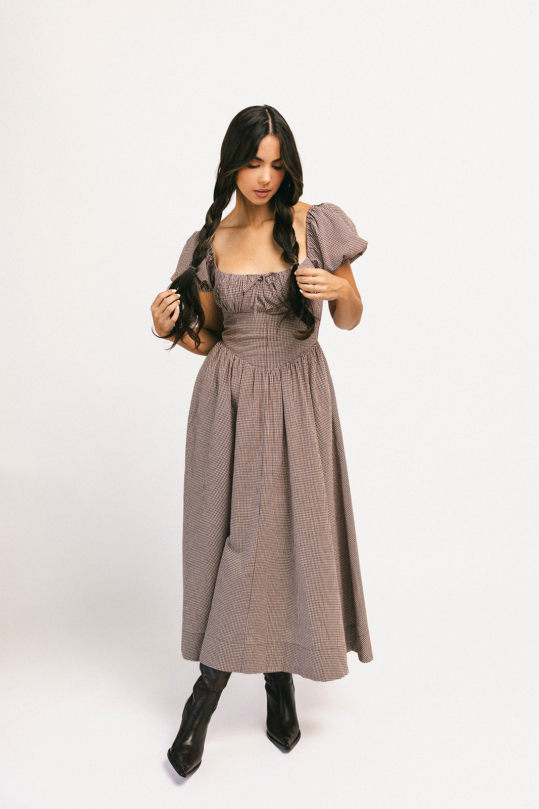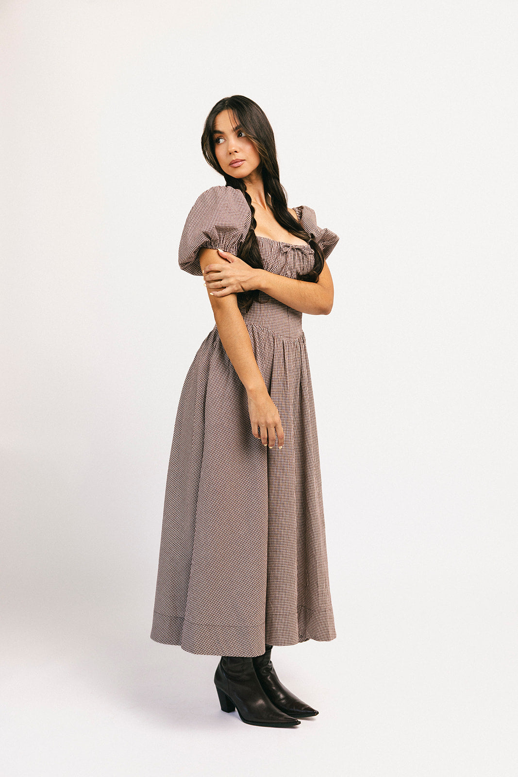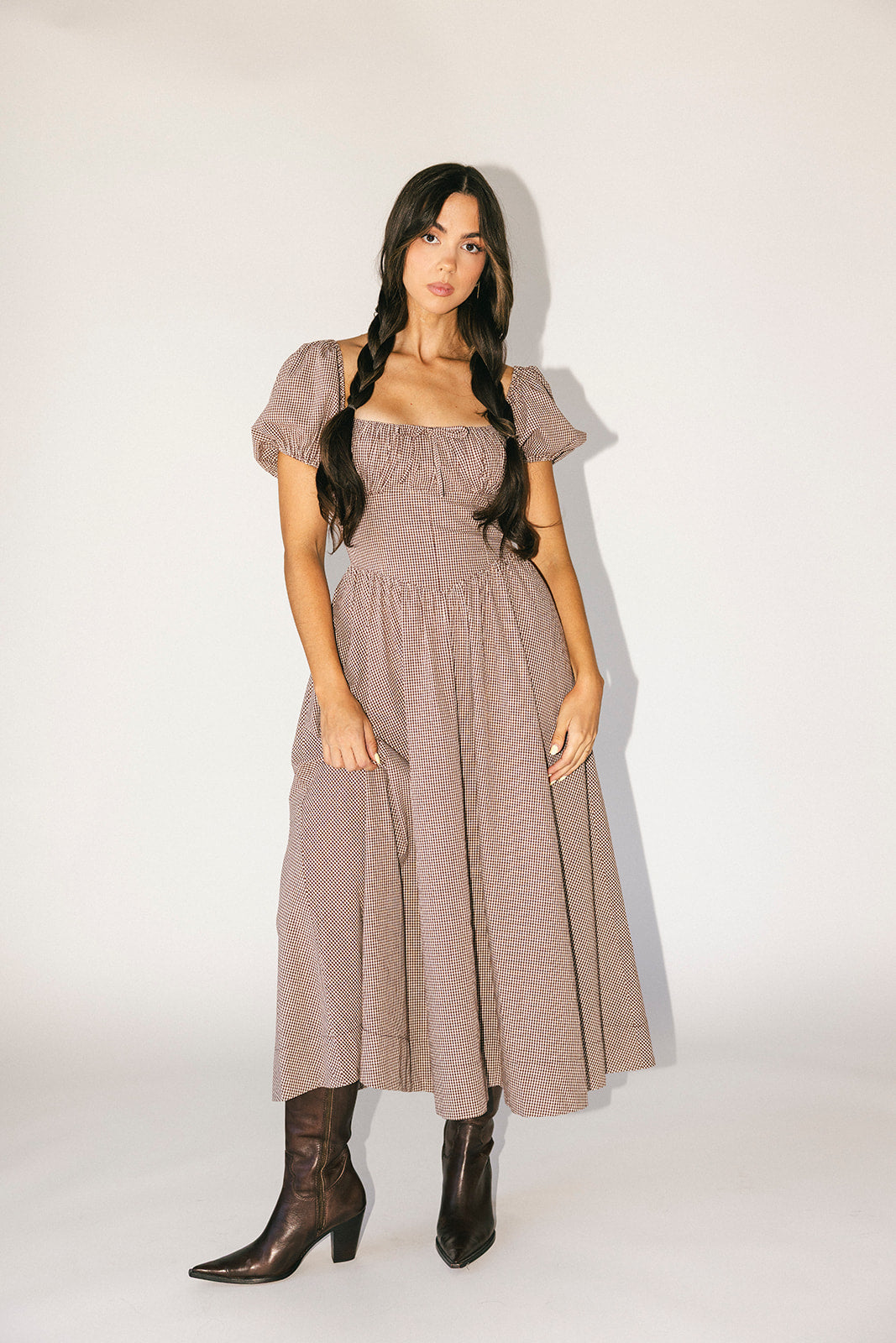 Nora midiklänning // brun gingham *exklusivt från Zoco*