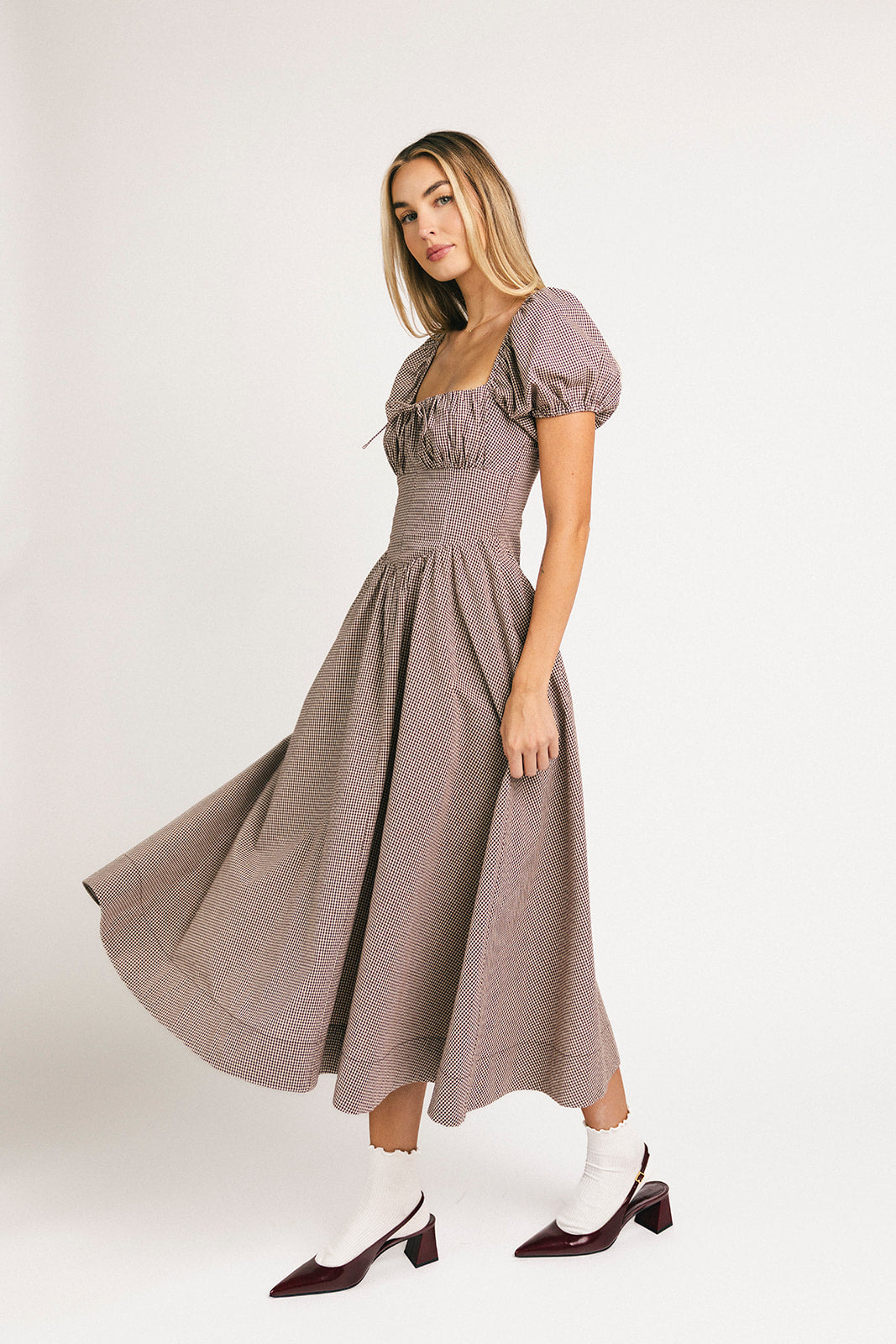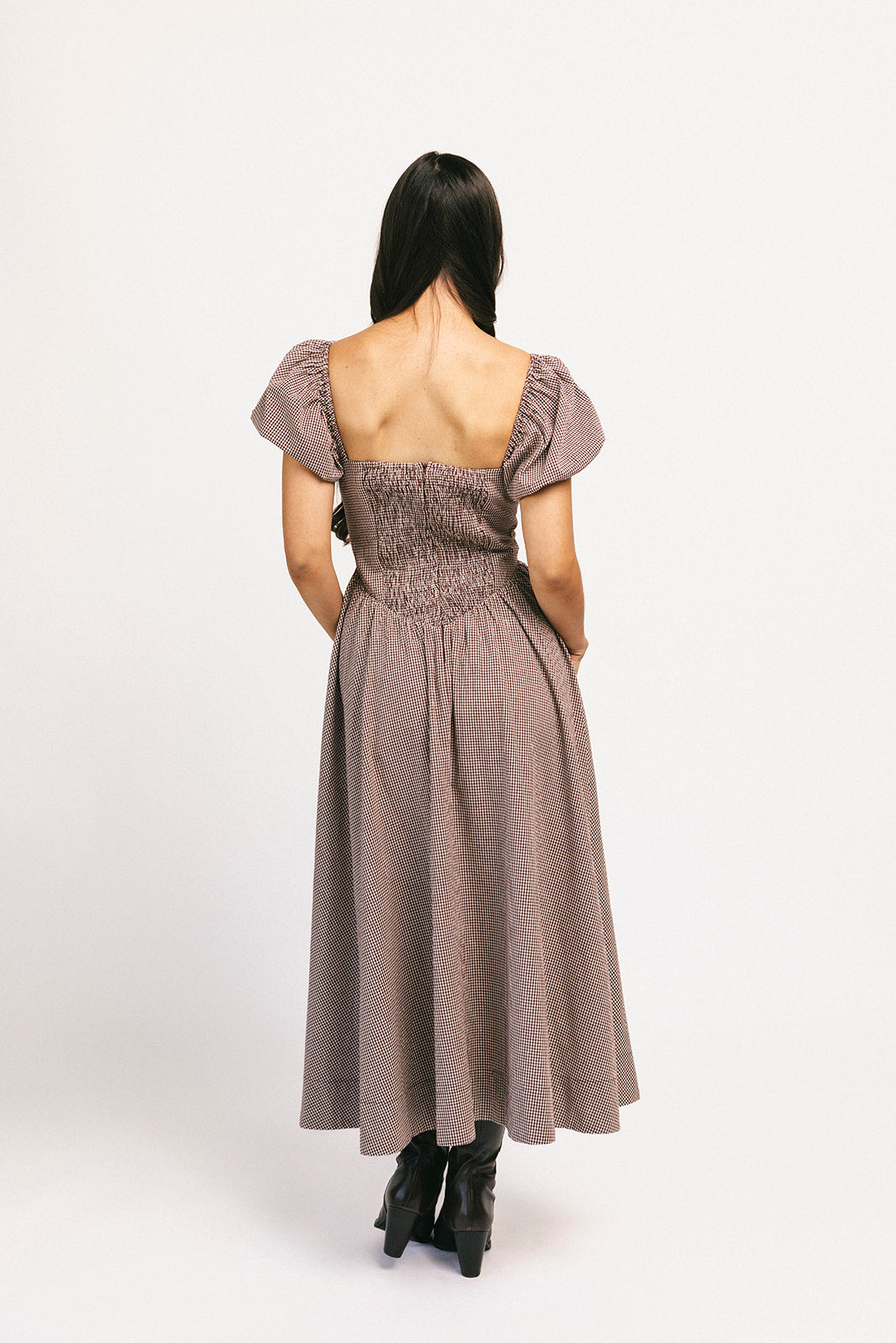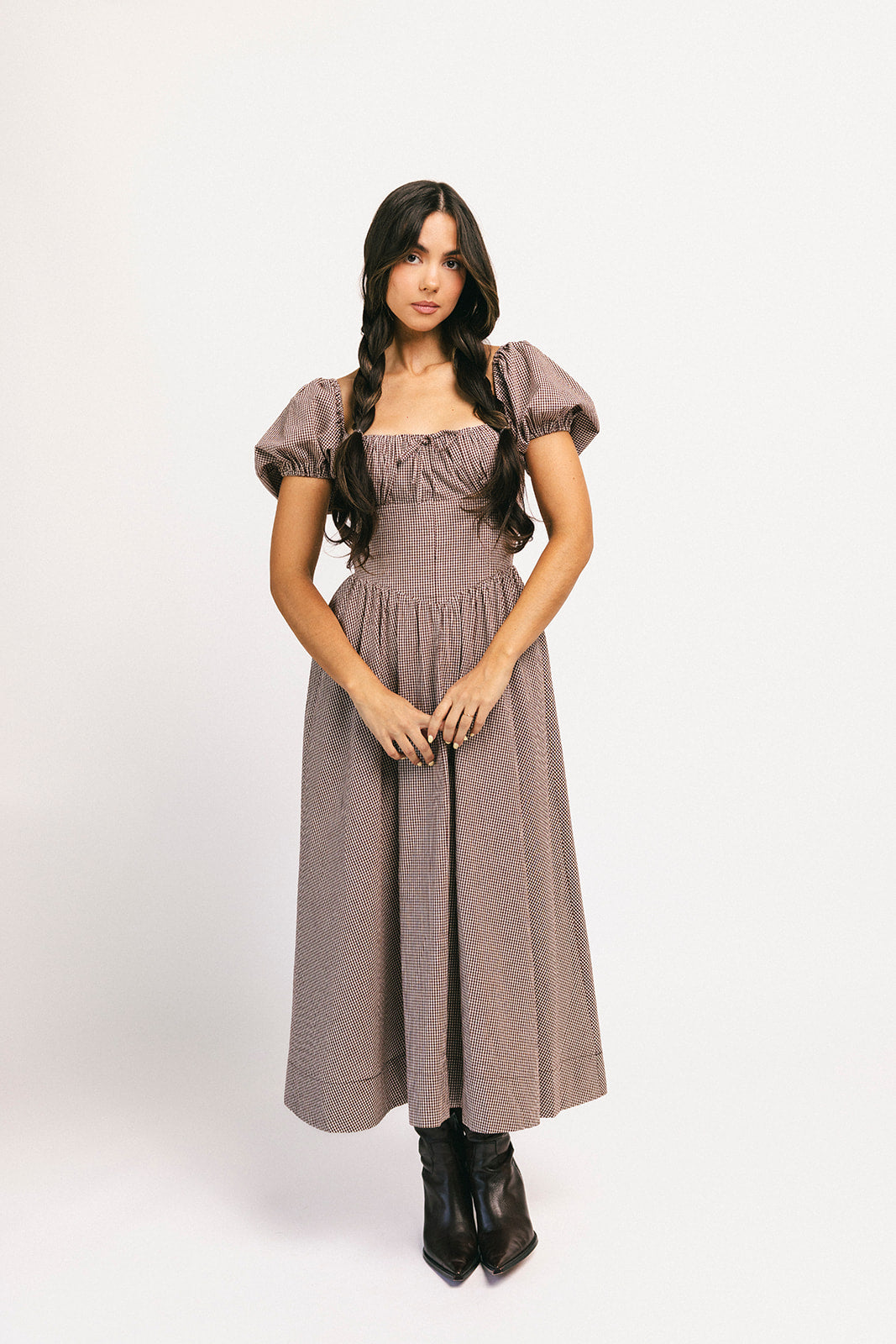 Nora midiklänning // brun gingham *exklusivt från Zoco*