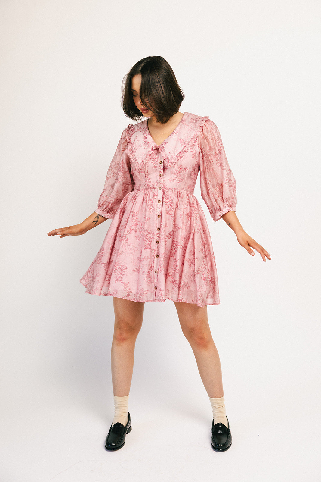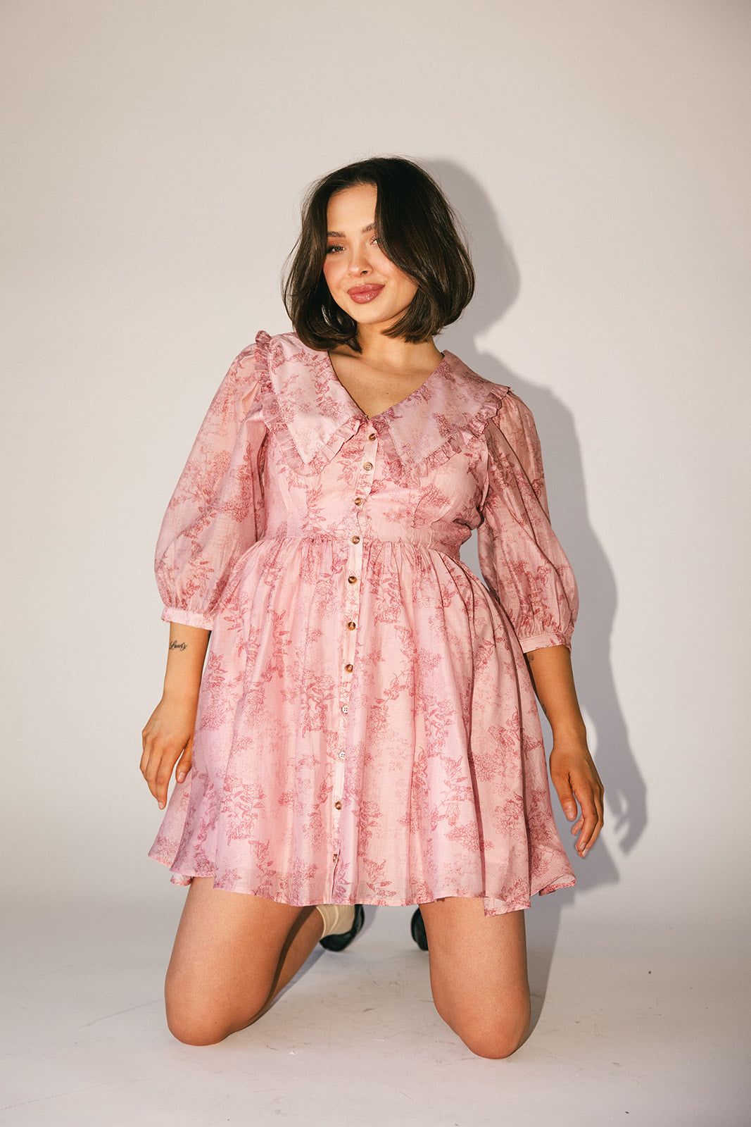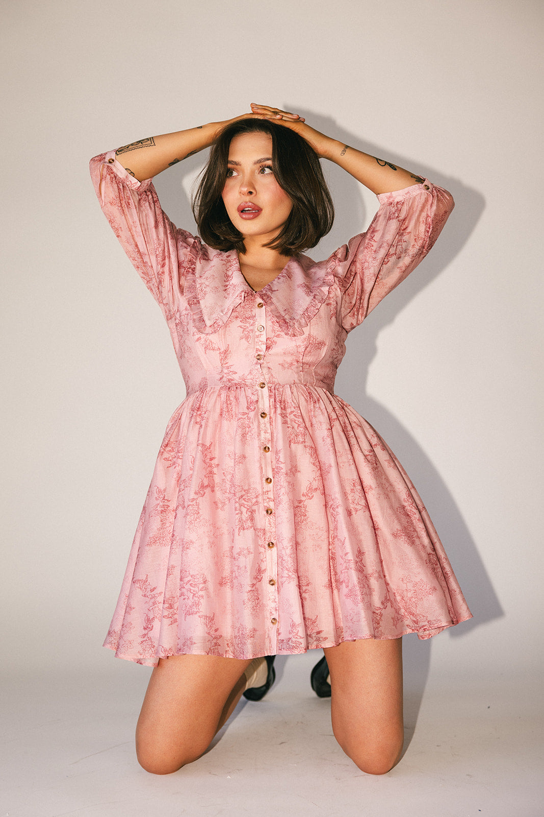 Vi presenterar: din nya favoritklänning med puffärmar. Med en volangkrage och ett vintageinspirerat blommönster tar denna rosa miniklänning med knappar dig från säsong till säsong. Vi älskar den för dejtkvällar, avslappnade utflykter och allt däremellan.