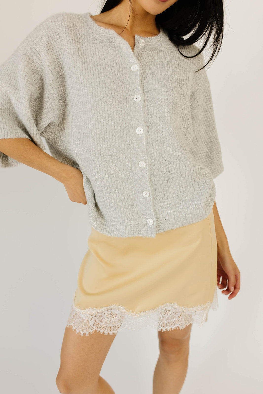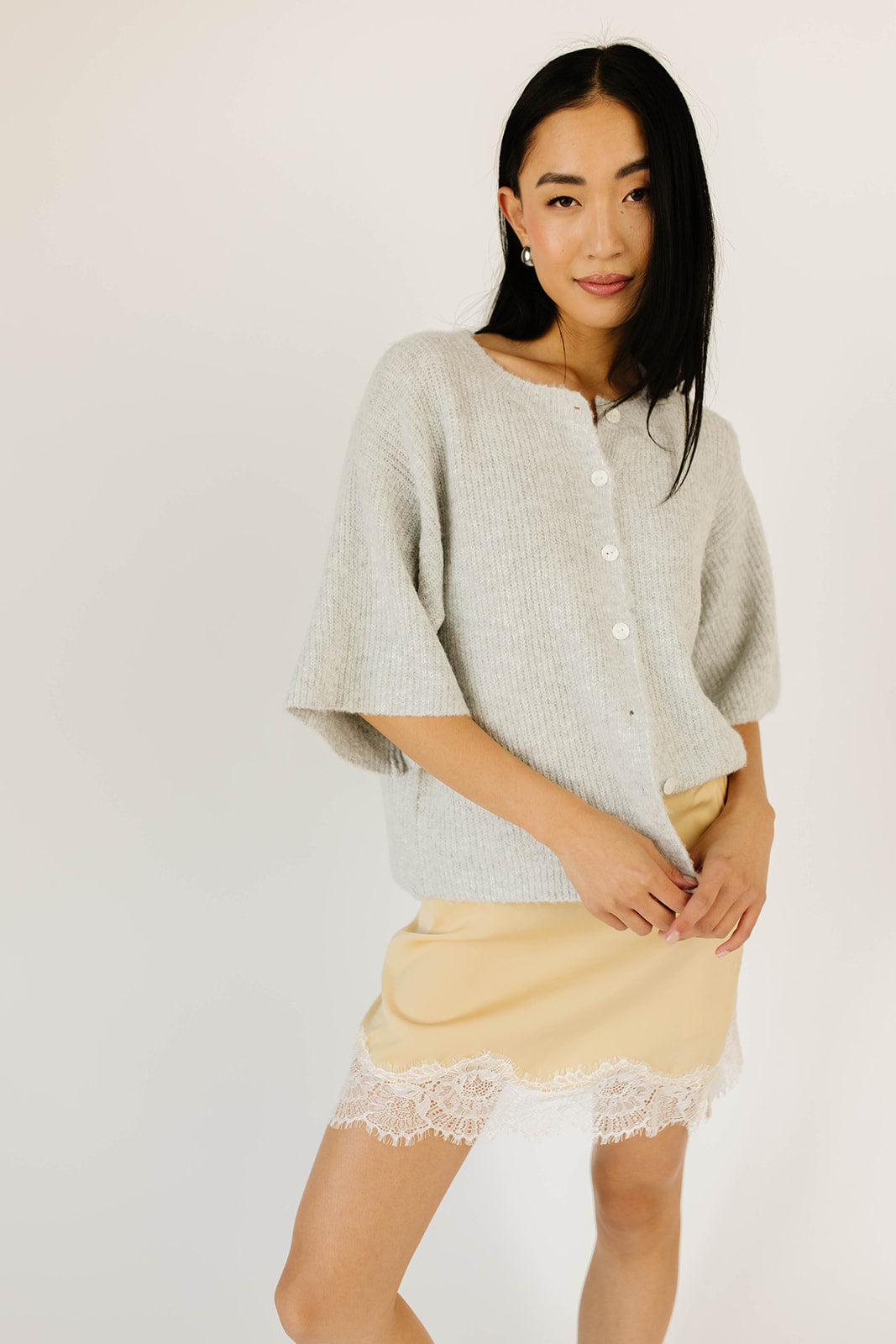 Denna exklusiva kortärmade kofta från Zoco är mjuk, lös och full av stylingmoment. Med sin avslappnade, boxiga passform och lösa, nedsänkta axlar är det en kofta som är gjord för att bäras över linnen och klänningar, eller som ensam kofta med dina favoritbyxor. Den perfekta grå stickningen med knappar för varje säsong, situation och tillfälle.