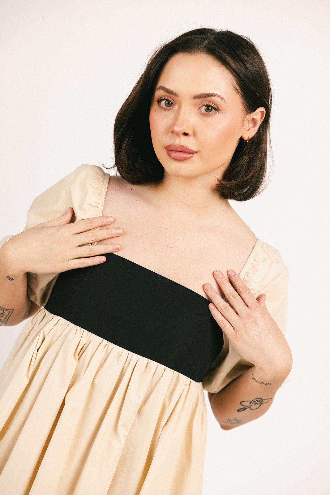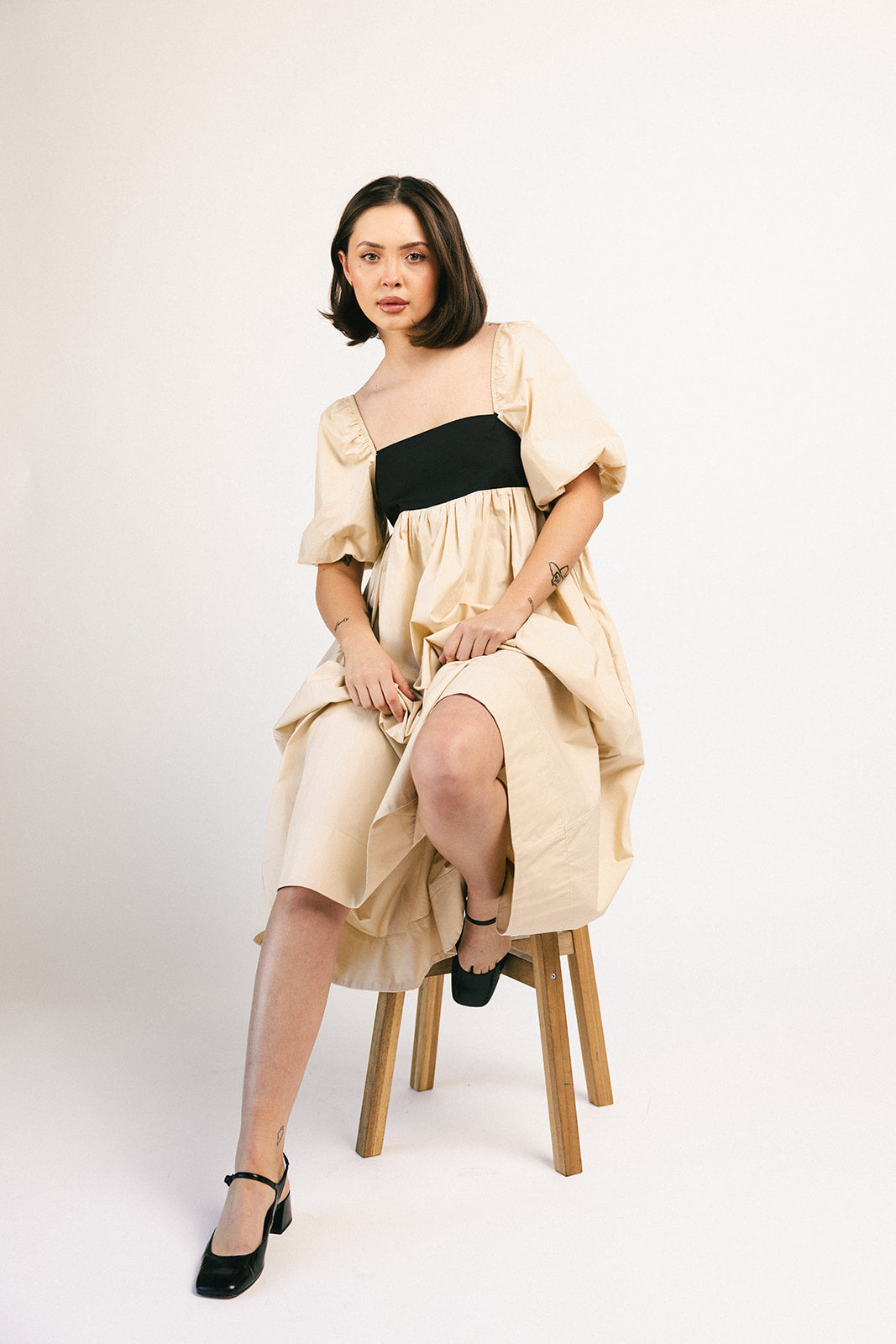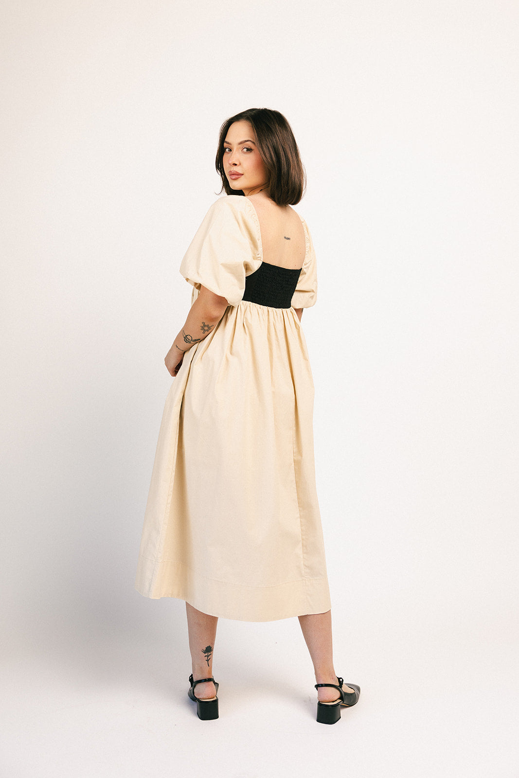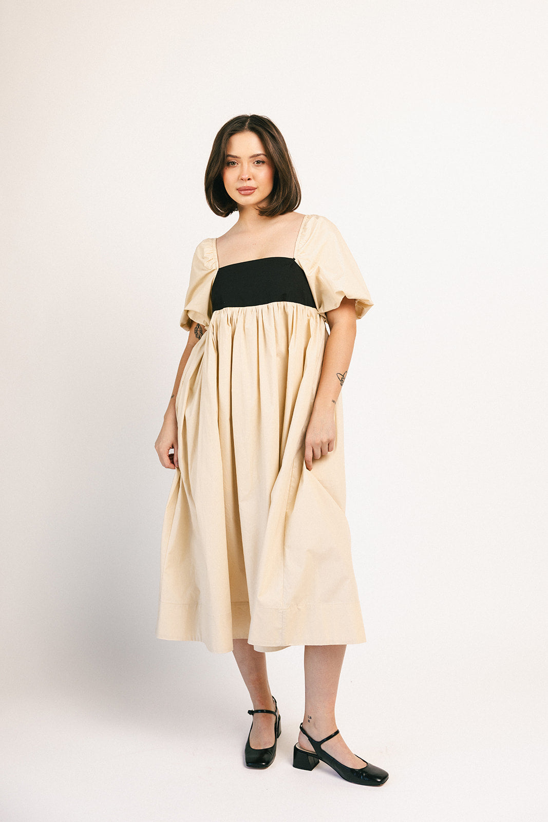 Denna eleganta midiklänning med puffärmar tar dig från brunchdejter till kvällsfester. Med en babydoll-silhuett och ett bandat överdel är det den perfekta eleganta midiklänningen för varje säsong och situation.
