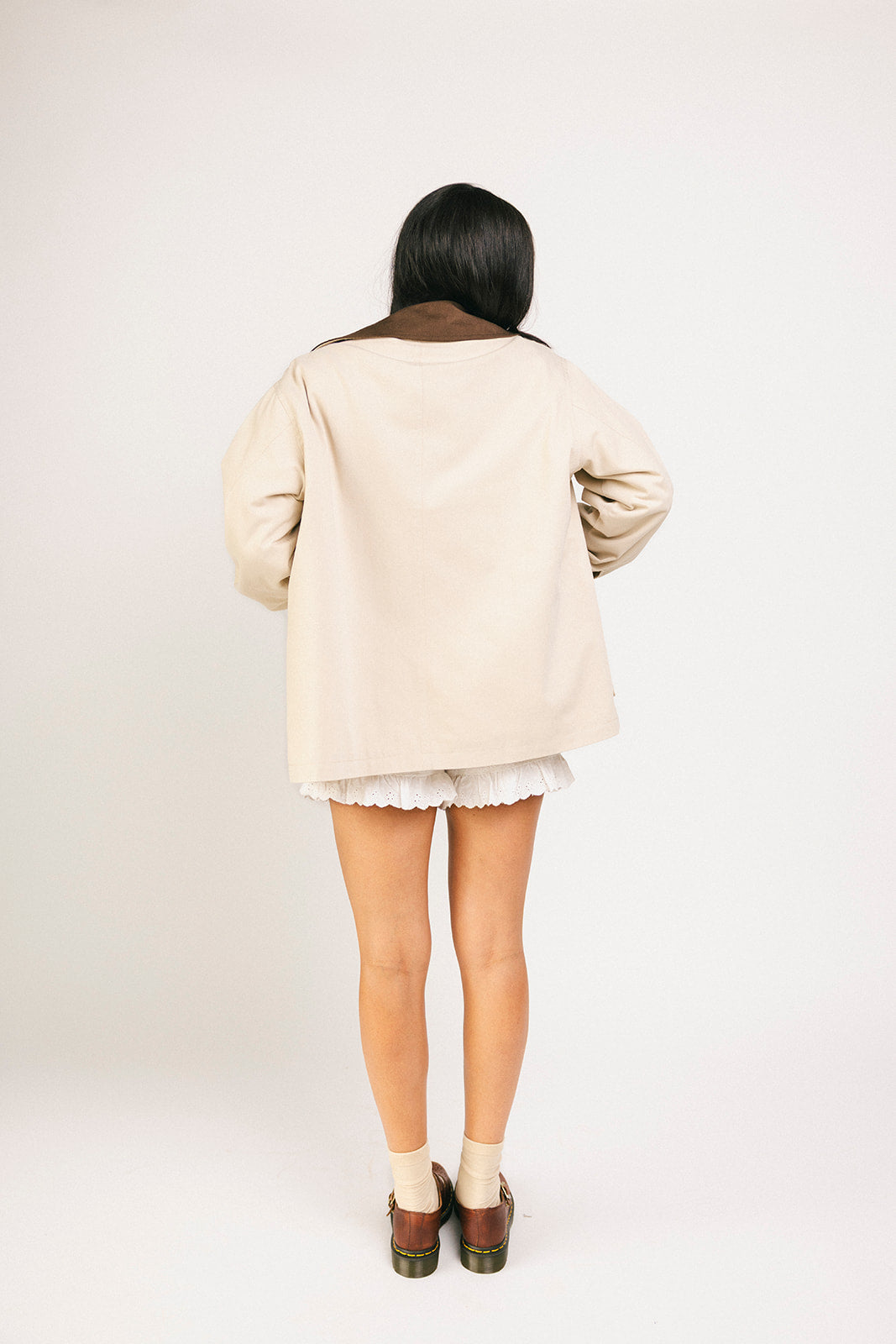 Vår drömjacka att "kasta på och gå" med. Denna överdimensionerade sötnos har en kontrasterande krage, rymliga fickor och dragkedja med tryckknappsdetaljer. En mångsidig nödvändighet, lätt nog för sommarkvällar, men tålig nog för höst- och vinterväder.